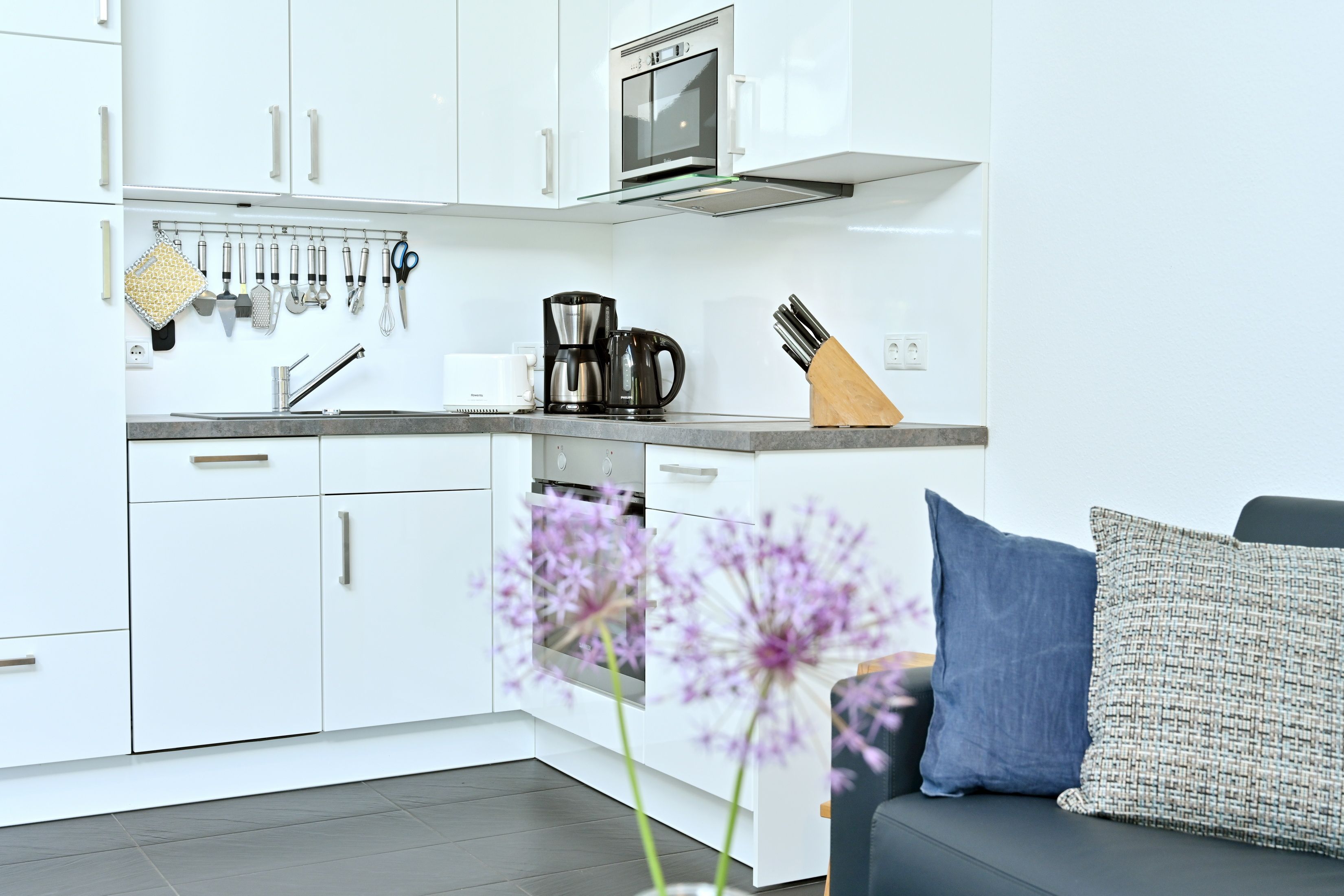 Küche mit Backofen, Mikrowelle, Spülmaschine, Kaffeefiltermaschine