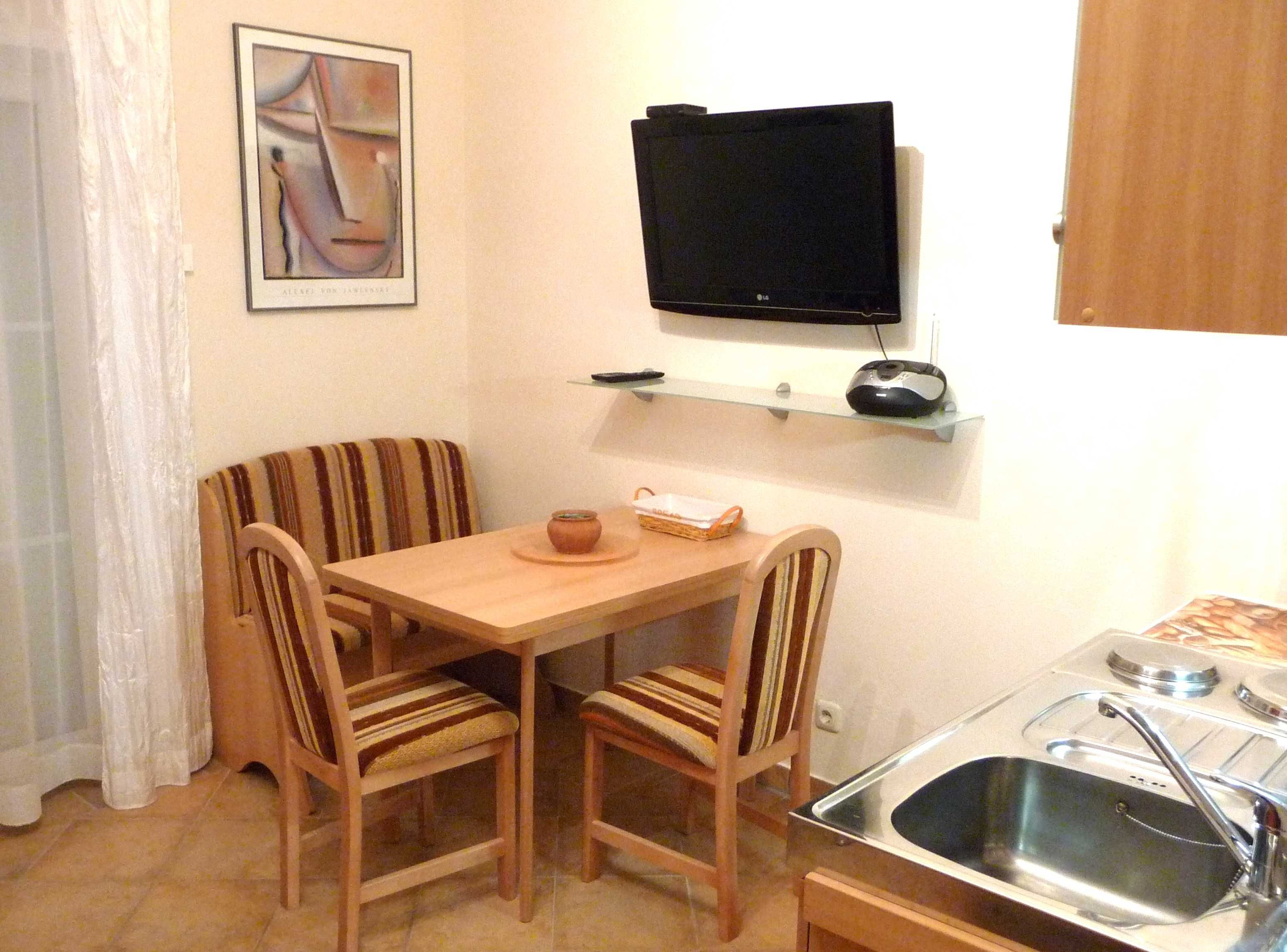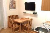 Appartements mit Doppelbett (außer Appartement Seestern), Pantryküche und möbliertem Balkon bzw. Terrasse mit Minigarten .