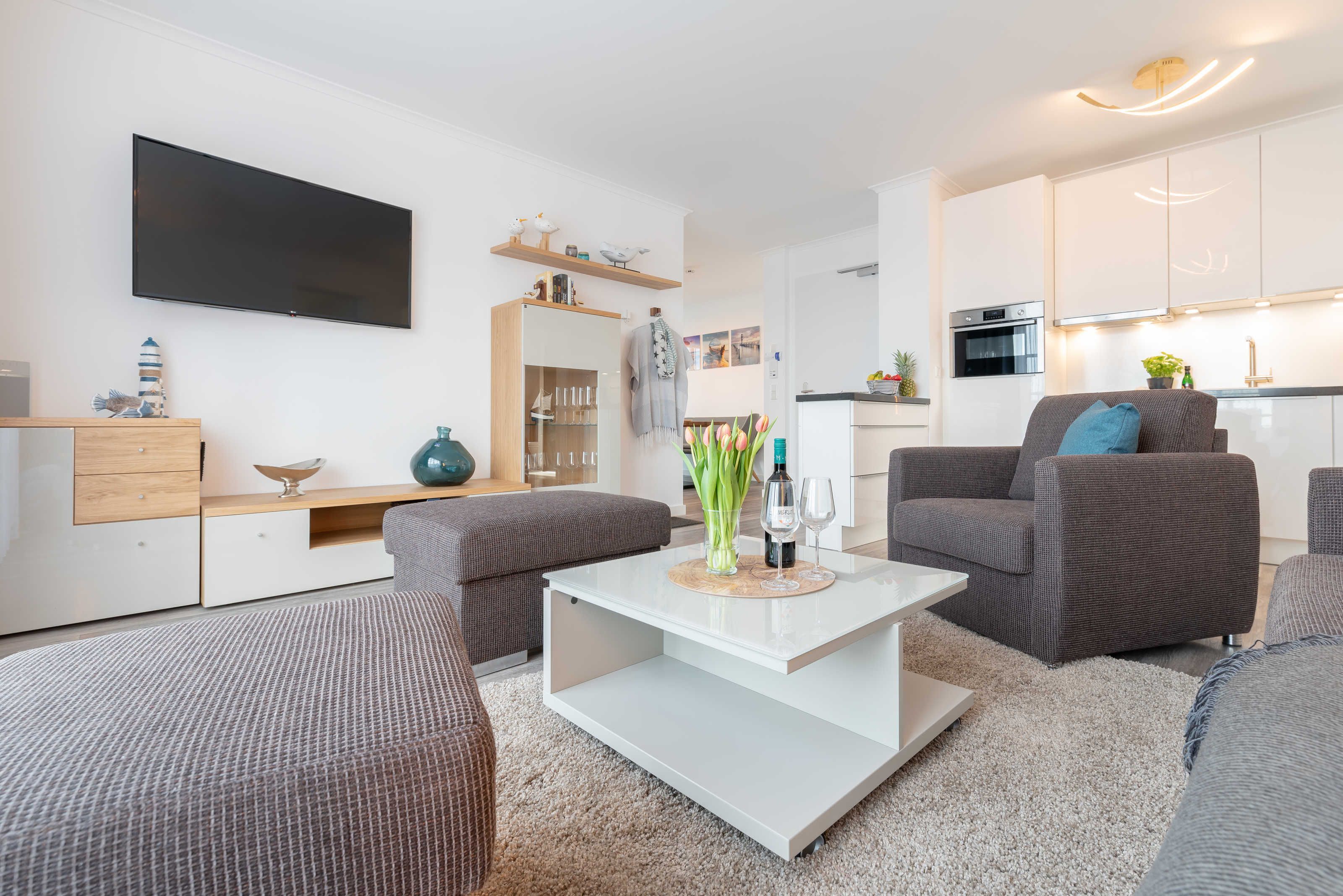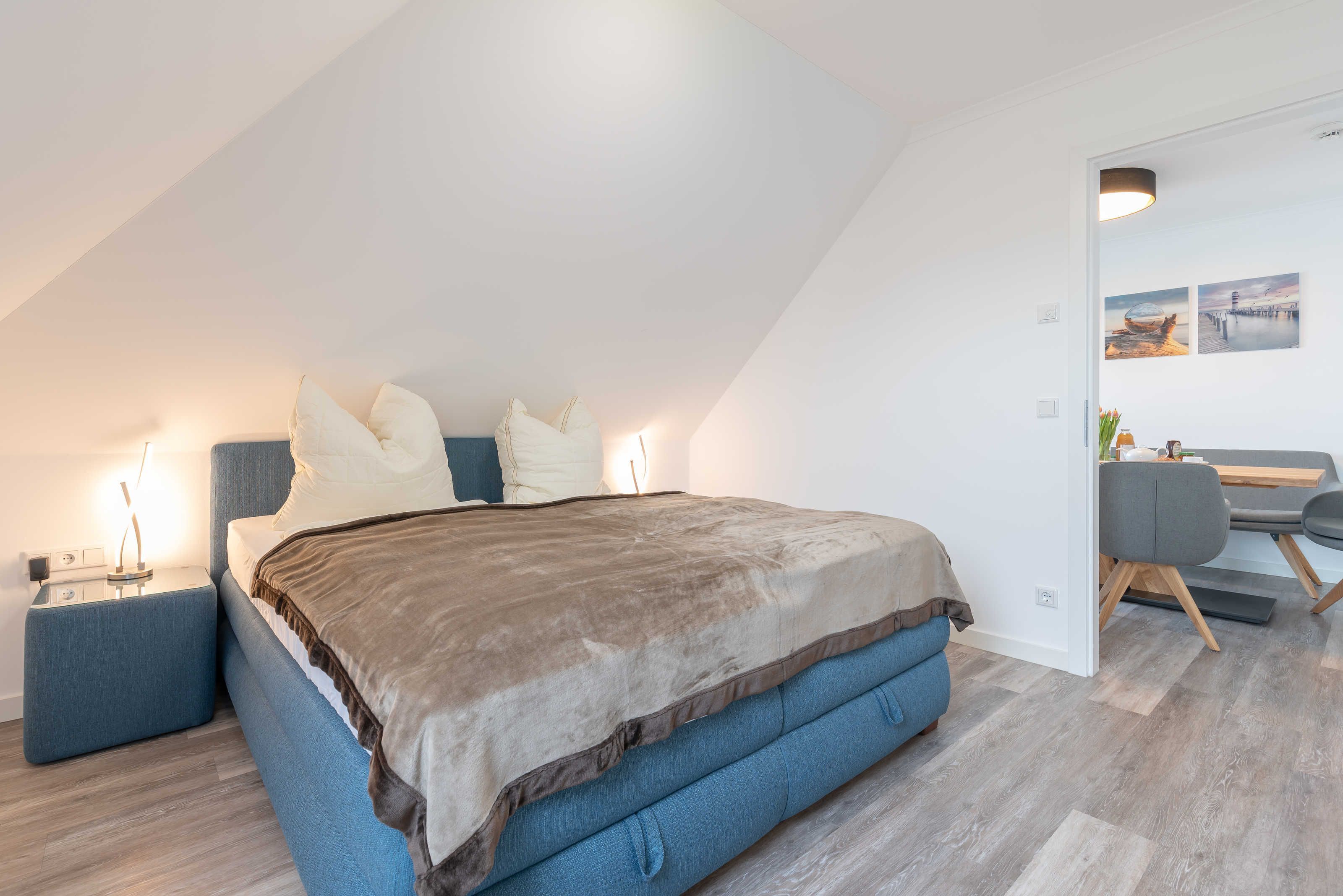 Die liebevoll eingerichtete Ferienwohnung befindet sich im zweite Obergeschoß (DG) im Haus Strandperle und bietet Platz für vier Personen.