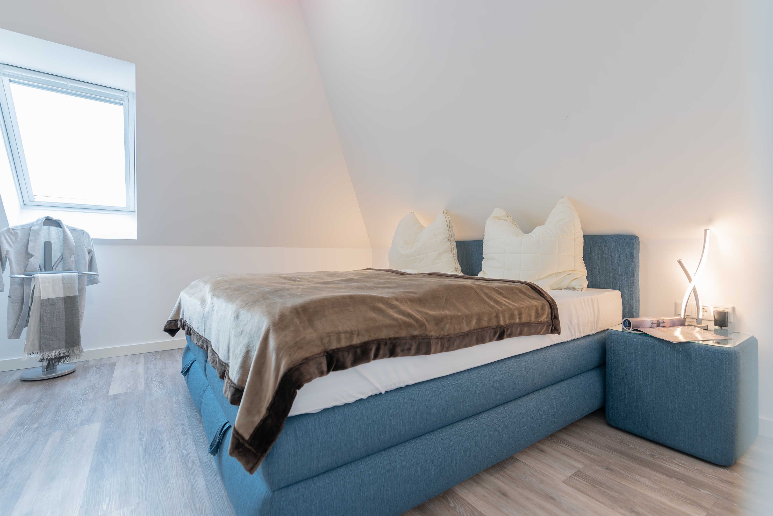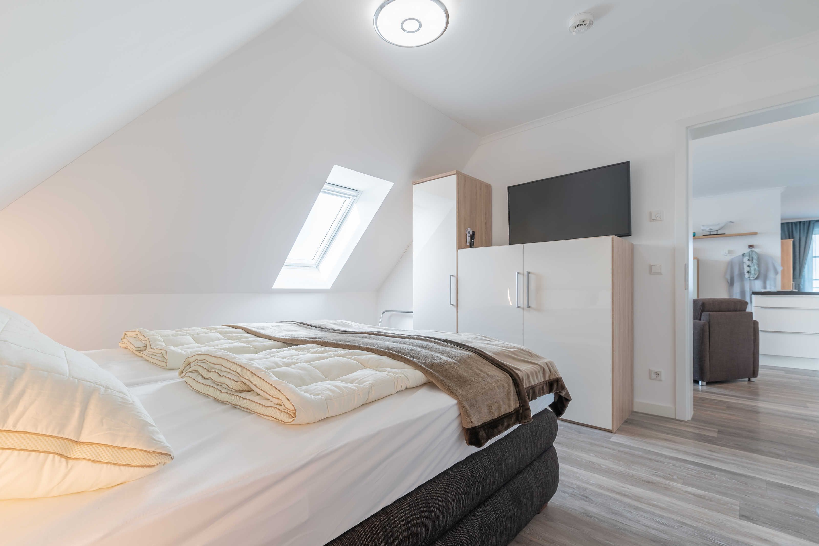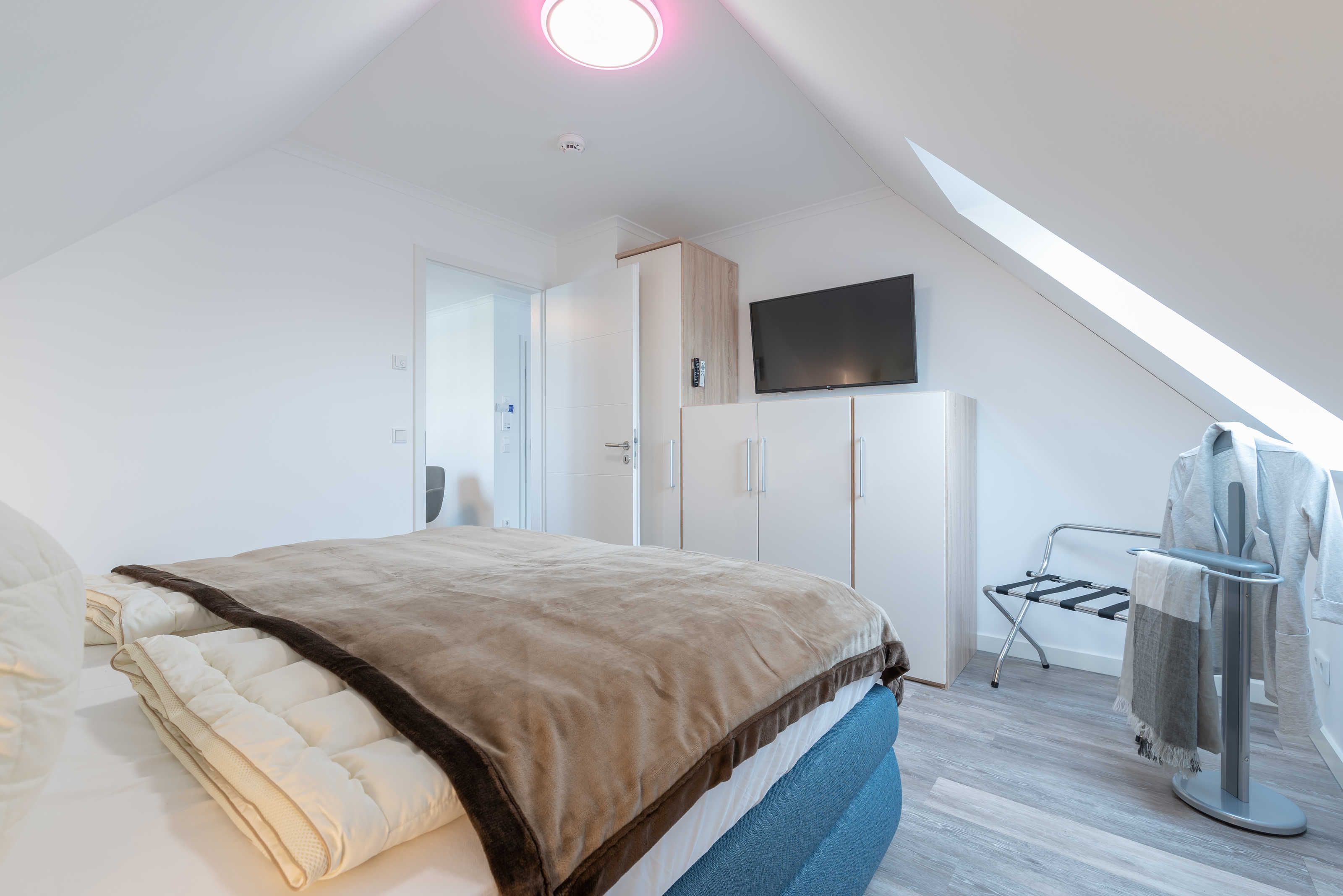 Alle Schlafzimmer sind mit einem großen Boxspringbett (1,80 x 2,00 m / getrennte Matratzen), komfortablen Kleiderschränken und je einem Flat-TV 43 Zoll ausgestattet.