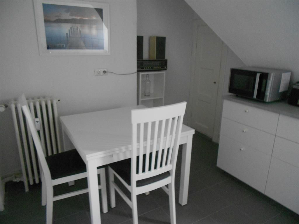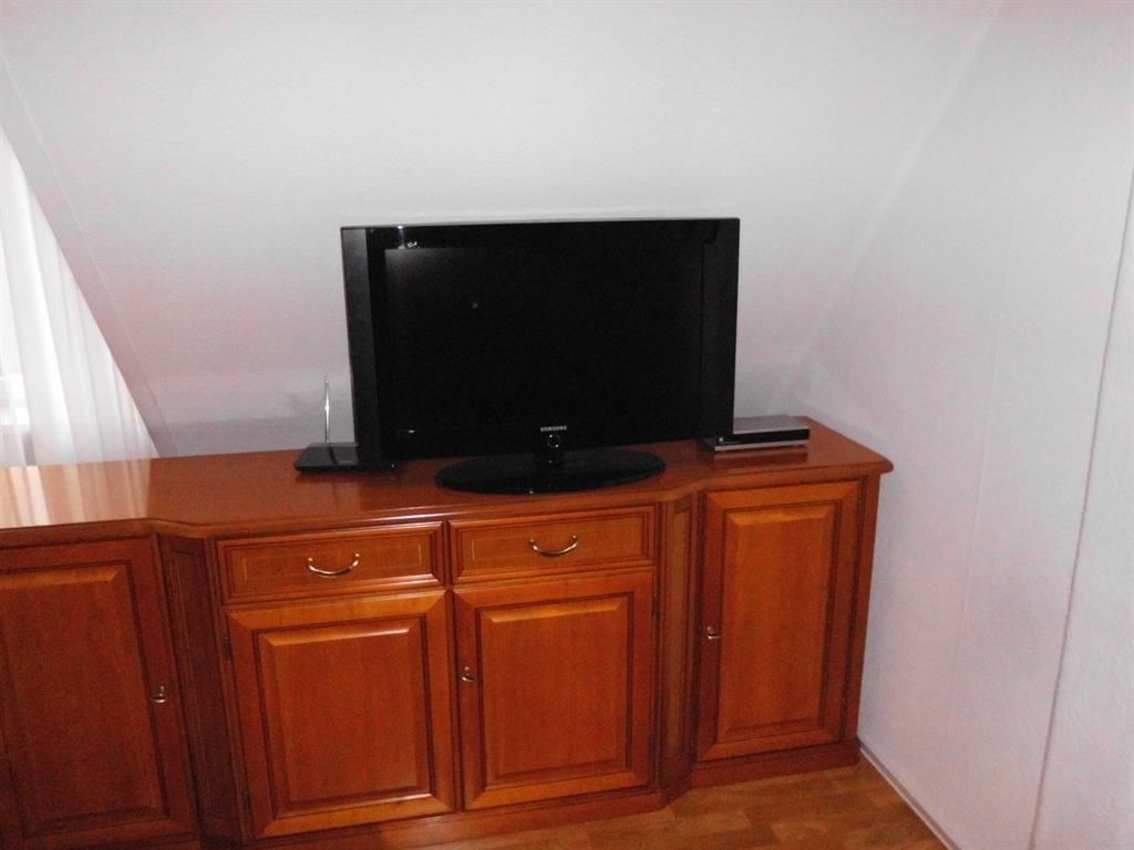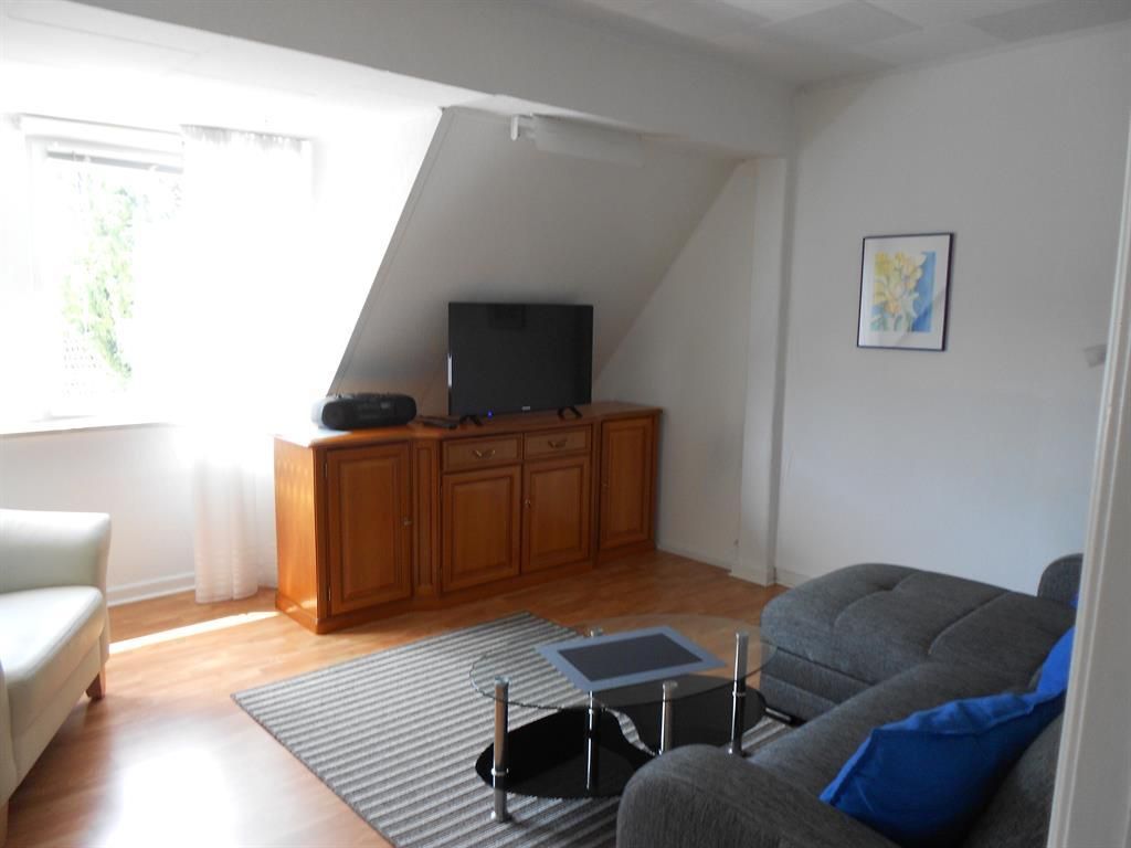 Die Ferienwohnung liegt im 2. OG eines kleinen Mehrfamilienhauses. Sowohl das Wohnzimmer, als auch das Schlafzimmer sind lichtdurchflutet. Das Schlafzimmer ist mit 2 Einzelbetten (90x200, verstellbares Lattenrost, Federkernmatratze), Nachtschränken und einem großen Kleiderschrank ausgestattet. Im Wohnzimmer befindet sich ein Ecksofa mit Schlaffunktion, Couchtisch, Anrichte, LED-Fernseher (DVB-T), Musikanlage und einem gemütlichen Sessel mit kleinem Tisch. Das Bad ist mit einer Badewanne ausgestattet. Die Küche ist ausgestattet mit einer kleinen Einbauzeile, Essplatz (Tisch mit Stühlen), Herd mit Backofen, Mikrowelle mit Grill, Kühlschrank mit Gefrierfach, Kaffeemaschine, Wasserkocher und Toaster. Das Wohnzimmer, das Schlafzimmer und der Flur sind mit Laminat ausgelegt.