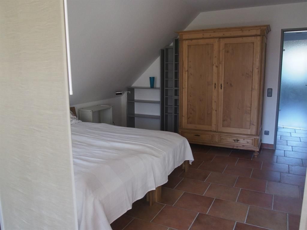 Die Ferienwohnung ist über einen separaten Eingang zu erreichen und befindet sich im Dachgeschoss eines freistehenden Mehrfamilienhauses. Auf 100 qm erwartet Sie eine helle, liebevoll eingerichtete 2-Zimmer Wohnung mit Schlafzimmer, Wohnzimmer, offener Küche und Duschbad. Das Schlafzimmer verfügt über zwei einzelne Betten, die auch gerne zusammengestellt werden können. Der Wohnraum ist mit einer gemütlichen Sitzgruppe (Schlafsofa) eingerichtet. Es stehen ein Fernseher sowie ein CD-Player mit Radio zur Verfügung. Die moderne Küche, die zum Wohnzimmer offen ist, ist mit Geschirr und Kochutensilien sowie einem Geschirrspüler komplett ausgestattet. Teppiche und Fliesen sind in sehr gepflegtem Zustand. Das frisch renovierte, moderne Badezimmer besteht aus einer Dusche sowie einem WC.