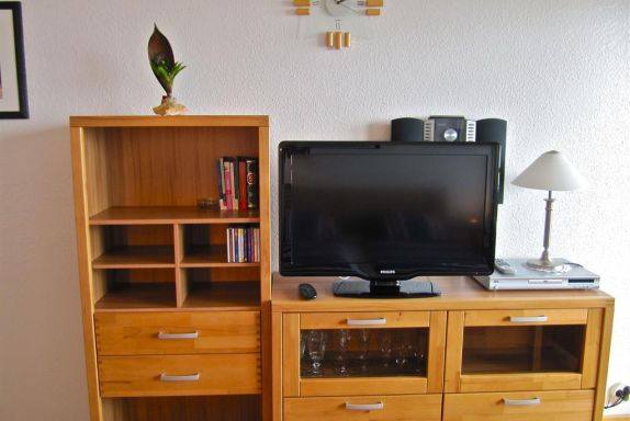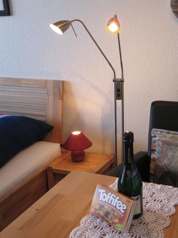 Im Wohn-Schlafraum befindet sich ein großes Doppelbett (180 cm x 200 cm) mit Esstisch, zwei bequemen Stühlen, Wohnwand mit Flachbild-TV, DVD-Player und Radio/CD Player mit USB Anschluss. Das Appartement ist neu und modern mit Kernbucheholzmöbeln, Küchenzeile mit Heissluftfriteuse, Cerankochfeld und Kaffeemaschine, Wasserkocher, Toaster, Vinyl-Laminatböden, Flureinbauschrank und ansprechendem Duschbad eingerichtet. Von der gepflegten Loggia mit Teppich, Glastisch, Relaxstühlen und Hocker haben Sie den direkten und freien Blick auf die Ostsee und geniessen ab Sonnenaufgang bis zum Mittag die Sonne. Wir empfehlen ein gemütliches, ausgedehntes Frühstück auf dem Balkon und anschließend ein paar sonnige und erholsame Stunden am Strand.