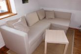 Vom Esszimmer gelangen Sie über eine massive Holztreppe in den Wohnraum. Der Wohnraum ist mit einem gemütlichen Schlafsofa (140 x 200) sowie einem Fernseher, CD und DVD Player ausgestattet. Angrenzend an den Wohnraum befindet sich ein kleines, mit hellen Fliesen ausgestattetes Duschbad.