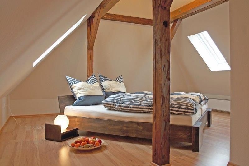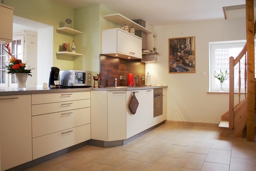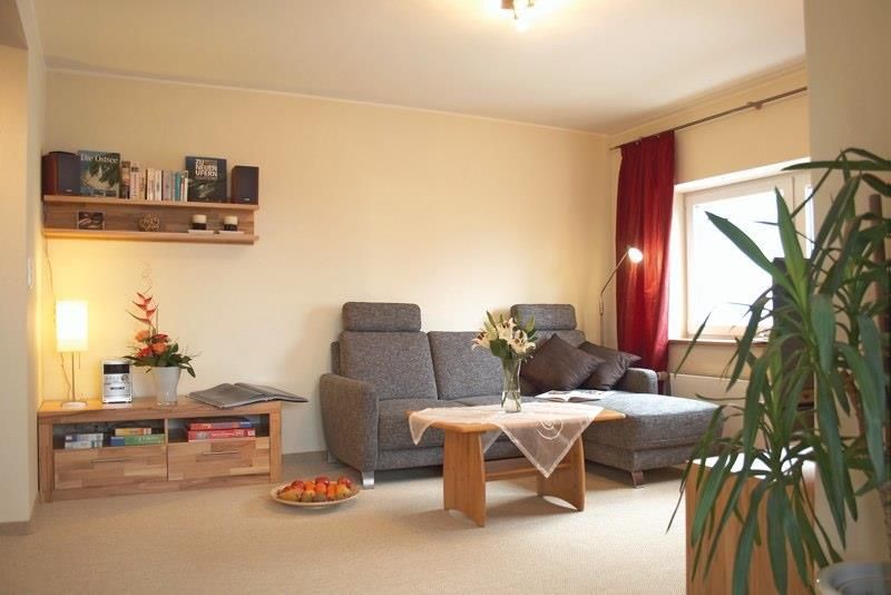 Die Wohnung ist im Obergeschoss mit separatem Eingang und hat über zwei Etagen eine Gesamtfläche von ca. 130 m2. Das gesamte Haus wurde 2008 komplett saniert und die Ferienwohnung völlig neu eingerichtet. Das Wohnzimmer ist ausgestattet mit Satelliten-TV, Bluetooth-Radio, DVD-Player und gemütlicher Couch.