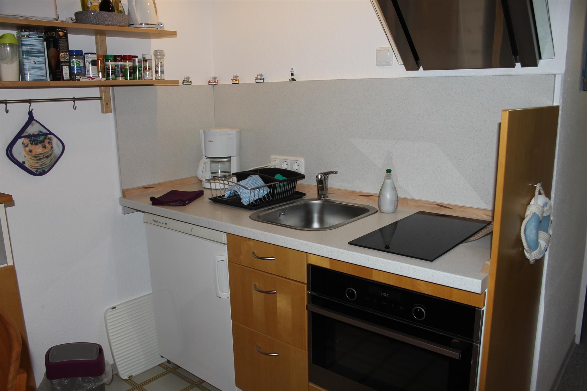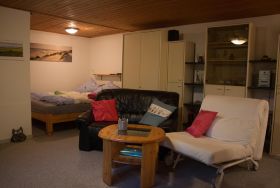 Das Appartement ist eine einfache, aber gemütliche Souterrainwohnung für bis zu 3 Personen in unserem EFH am Stadtrand von Kiel. Rauchen und Haustiere sind in der Wohnung nicht gestattet. Sie besteht aus einem großen Wohnraum mit einer Bettnische mit einem Doppelbett, einer Kochnische mit Essecke und einem Duschbad. Der Ausblick aus dem Fenster geht auf einen großen Lichtschacht. TV, Radio, CD und Internet sind vorhanden. Waschmaschine und Trockner der Vermieter können mitgenutzt werden. Mit der gegenüberliegenden Ferienwohnung kann die Wohnung auf bis zu 5/6 Personen erweitert werden. Gartenmöbel für den Freisitz sind vorhanden. Parkplatz am Haus. Babybett und Hochstuhl können ausgeliehen werden.