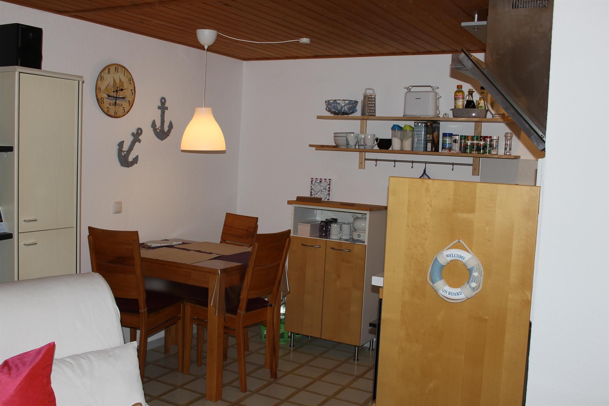TV, Radio, CD und Internet sind vorhanden. Waschmaschine und Trockner der Vermieter können mitgenutzt werden. Mit der gegenüberliegenden Ferienwohnung kann die Wohnung auf bis zu 5/6 Personen erweitert werden.