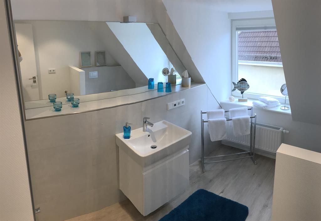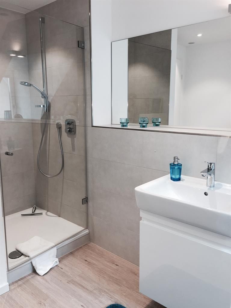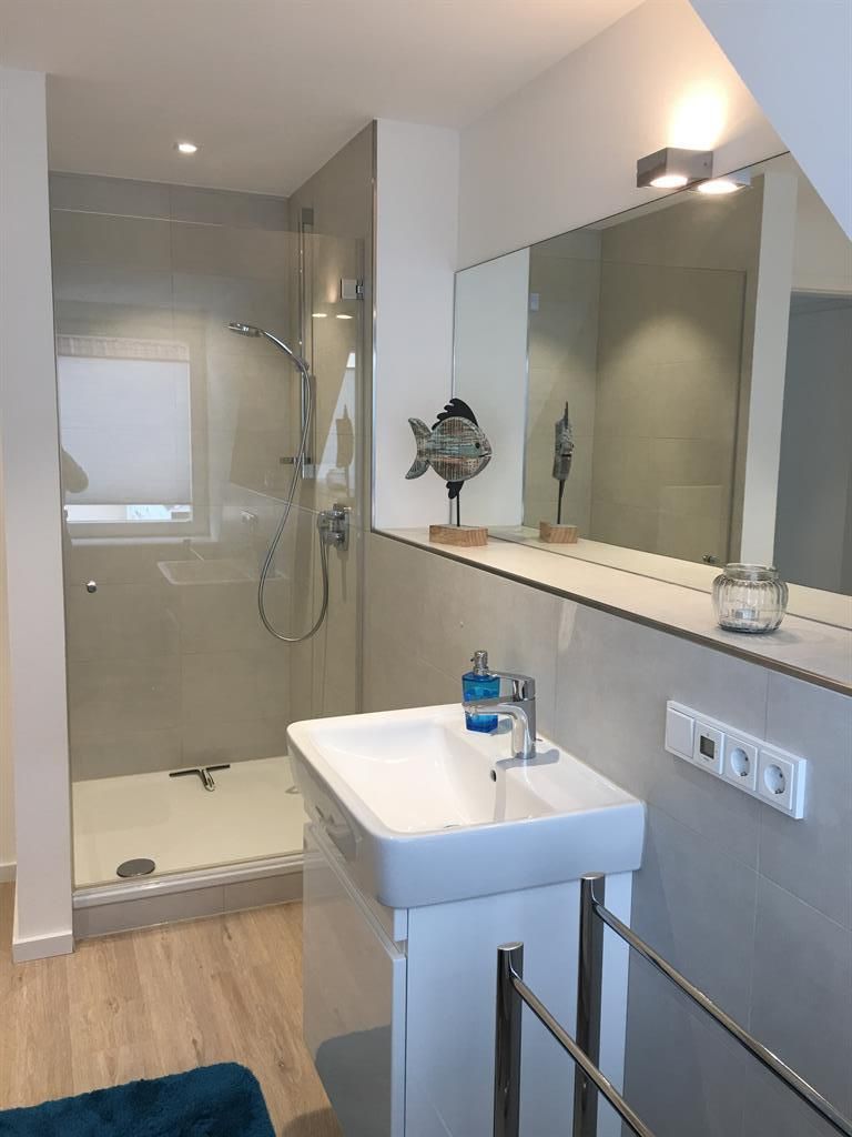 Das großzügige Bad ist mit einer leicht begehbaren und geräumigen Dusche ausgestattet.