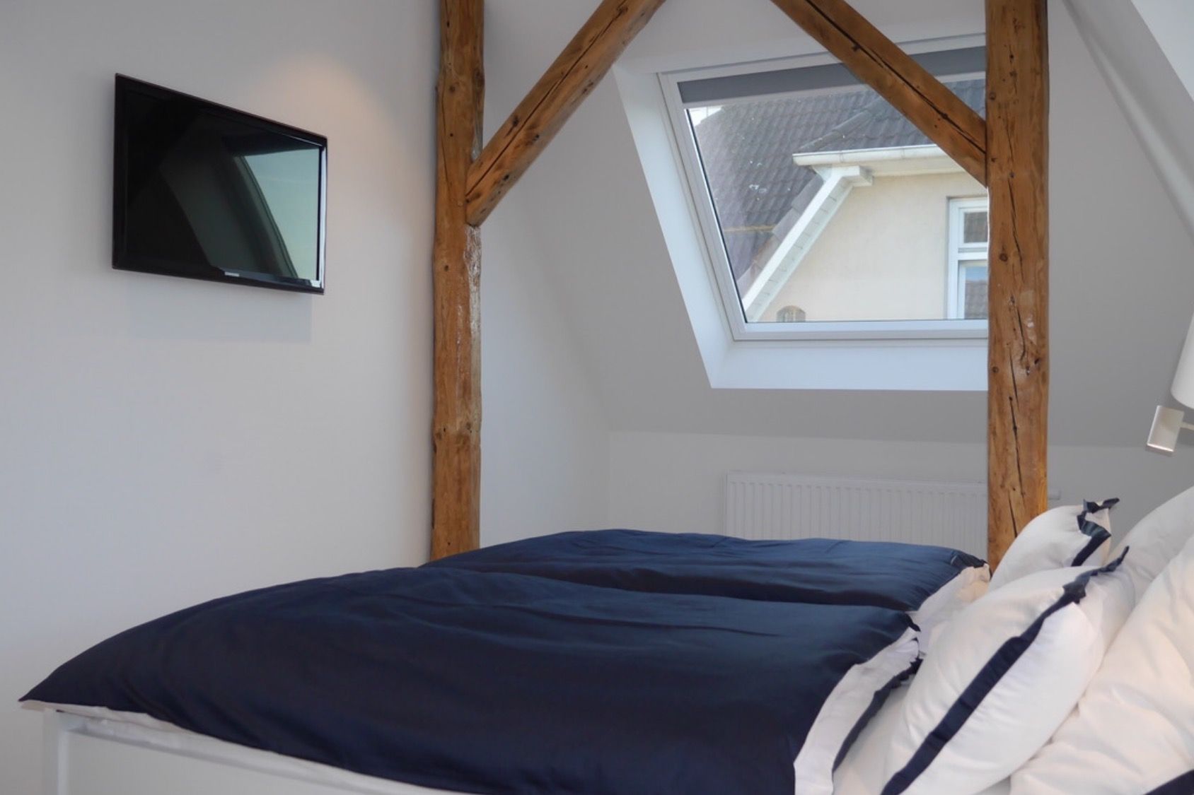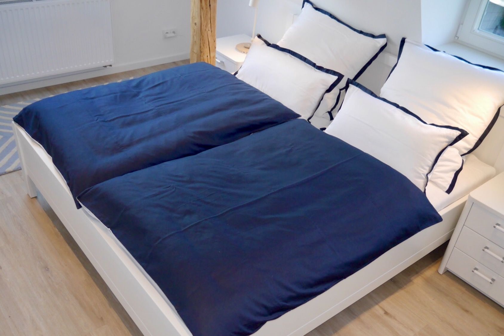 Erleben Sie eine erholsame Nachtruhe in dem behaglichen Schlafzimmer und einem komfortablen, 180 x 200 cm großen Doppelbett. Ein geräumiger Einbauschrank steht für Ihre Garderobe bereit. Zusätzlich ist ein 32 Zoll Flat-TV in dem Schlafzimmer vorhanden.
