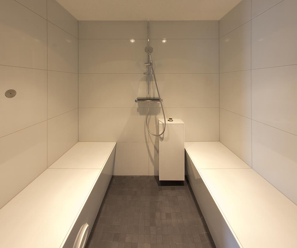 Eine großzügige Terrasse erweitert den Wohnbereich. Des weiteren befinden sich im Erdgeschoss ein großes Duschbad, ein Schlafzimmer und ein Hauswirtschaftsraum mit Waschmaschine und Trockner.