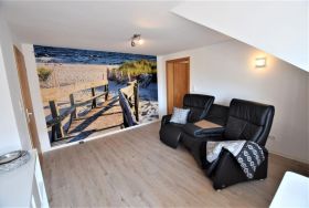 Die Wohnung T&T-2 ist für max. 2 Personen geeignet, verfügt über ein Schlafzimmer mit Doppelbett (2 x 2 m.) und hochwertigen Lattenrosten, die sich elektrisch verstellen lassen. Das Wohnzimmer verfügt über eine gemütliche, verstellbare Fernsehlounge, Kabel-TV und Hifi-Anlage. Das moderne Badezimmer verfügt über Dusche, WC und Waschtisch. Auf dem Balkon stehen Gartenmöbel und Sonnenschirm für Ihren Aufenthalt bereit. Nichtraucherwohnung! PKW Stellplätze sind an der Straße kostenfrei vorhanden.