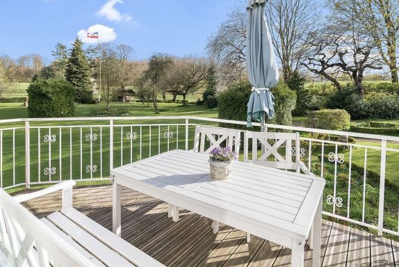 Vor dem Bauernhaus lädt ein parkähnlicher Garten zum Faulenzen ein. Das abendliche Grillen am Lagerfeuer oder die Klönabende vor dem Kamin auf der Jagddiele runden die erfüllten Urlaubstage ab.