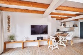 Der ehemalige Wagenschuppen beeindruckt durch architektonische Raffinessen und die wunderschöne Lage direkt am Mühlenteich. Hier lässt es sich herrlich auf der eigenen Terrasse entspannen. Wählen Sie zwischen drei Wohnungen (67-87 qm) für 4 bis 5 Personen ! Zur Ausstattung gehören u.a. Geschirrspüler sowie in den größeren Wohnungen ein Gäste-WC.