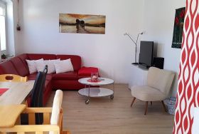 Diese grundsanierte Doppelhaushälfte Abendrot ist eine unserer schönsten und beliebtesten Wohnungen. Diese modern eingerichtete Haushälfte hat zwei schöne Schlafräume mit einem großen Boxspringbett und Zweitfernseher und einer mit Etagenbett, hierzu ist ein zusätzliches Reservebett oder ein oder zwei Kinderbettchen sind möglich. Die Wohnung befindet sich komplett im Erdgeschoß. In der vollständigen Küche kann man wunderbar kochen. Eine sonnige Terrasse mit neuem Strandkorb direkt an der Wohnungstür. Der Grill, die Kleinkindsandkiste, das Spielhäuschen, Hängematte und Wäschespinne sind zur allgemeinen Nutzung.