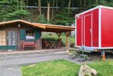 Eine kleine Auszeit im Grünen gesucht? Direkt am Waldrand erwartet Sie unsere kleine und gemütliche „Strandbude“ mit Platz für vier Personen. Im Holzhaus finden Sie zwei Etagenbetten (4x 90x200) mit einer kleinen Sitzecke. Im danebenstehenden Wohnwagen finden Sie eine kleine Küchenzeile, eine Dusche und eine separate Toilette. Wie wäre es zum Start in den Tag mit einem heißen Kaffee auf der Terrasse? Von dort aus geht es direkt weiter mit einem ausgiebigen Waldspaziergang, zum Beispiel bis in den polnischen Teil der Insel Usedom. Wie wäre es zum Ausklang eines romantischen Abends mit etwas Leckerem vom rustikalen Außengrill auf der Terrasse oder einem Rotwein? Legen Sie die Beine hoch und entspannen Sie sich. Bei uns bleiben keine Wünsche offen. Kommen Sie mit dem Auto oder vielleicht ganz sportlich mit dem Fahrrad? Für beides haben wir selbstverständlich einen Platz auf dem Grundstück. Das ist noch längst nicht alles. Sie finden bei uns kostenfreies WLAN, Smart-TV mit Streamingfunktion, DVD-Player, Kühlschrank, Induktions-Kochplatte, Mikrowelle mit Grill, Wasserkocher, Kaffeemaschine, Toaster, Föhn und vieles mehr. Eine Heizung ist nicht vorhanden!