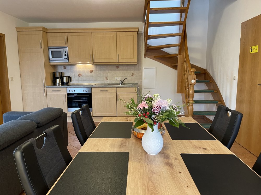 Ihre Ferienwohnung bietet über 2 Etagen, auf 60m² viel Platz zum Entspannen und Erholden für 4 Personen. Die liebevoll eingerichtete Wohnung verfügt über einen gemütlichen Wohnbereich mit offener Wohnküche, ein Schlafzimmer mit Doppelbett und ein Schlafzimmer mit 2 Einzelbetten (Aufbettug auf Anfrage) sowie ein Badezimmer mit Dusche/WC.