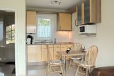 Sehr elegant eingerichtetes 5-Sterne Ferienhaus für 2 Personen im Maisonettenstil. Auf insgesamt 50 qm Fläche finden Sie im EG eine Nolte-Küche mit Cerankochfeld, Abzugshaube, Spülmaschine, Kühlschrank mit Gefrierfach, Mikrowelle. Essplatz, gemütliches Wohnzimmer mit Sat-TV, Telefon und kostenlosem WLAN-Internetzugang. Gäste-WC mit Waschmaschine.