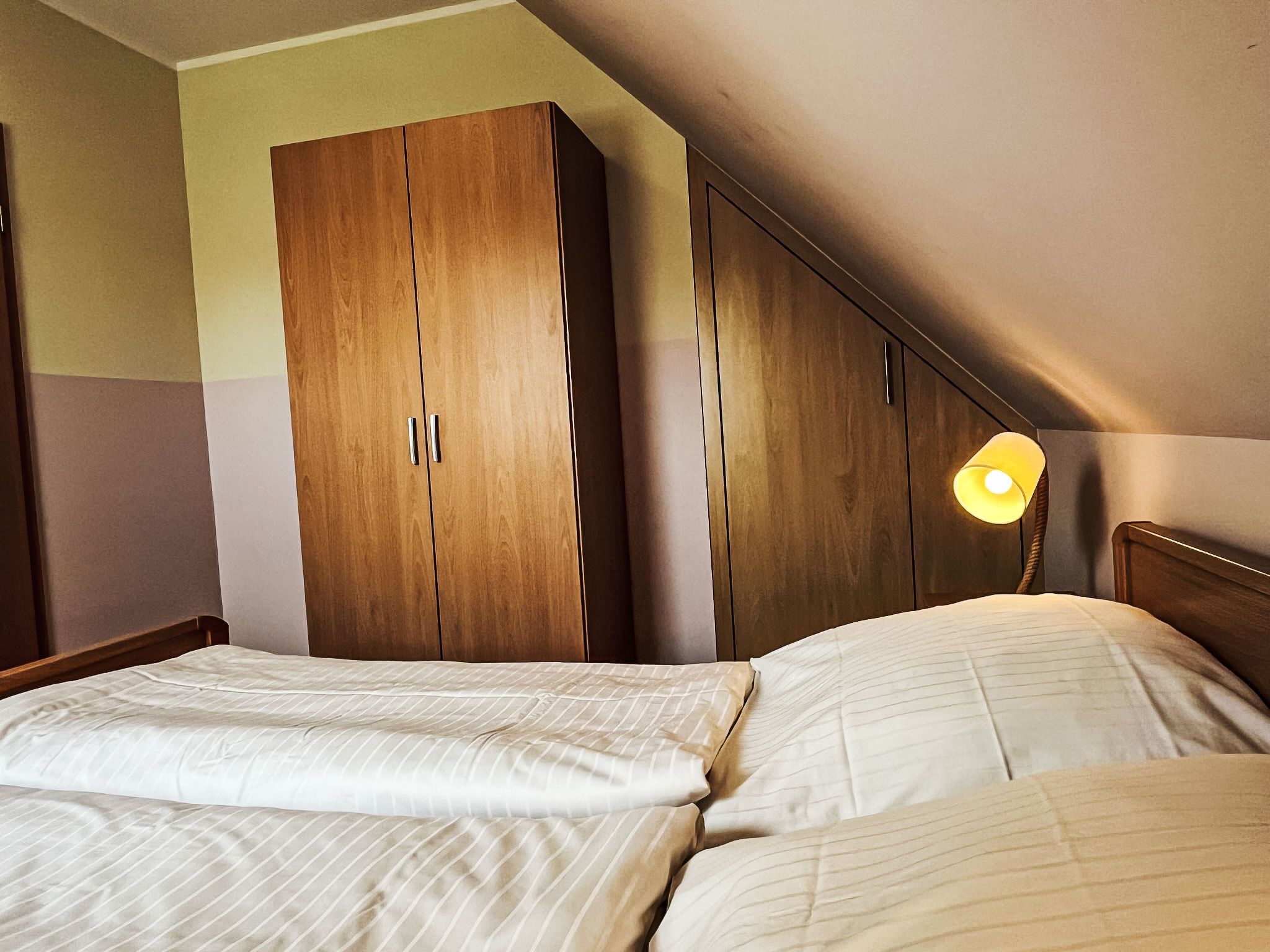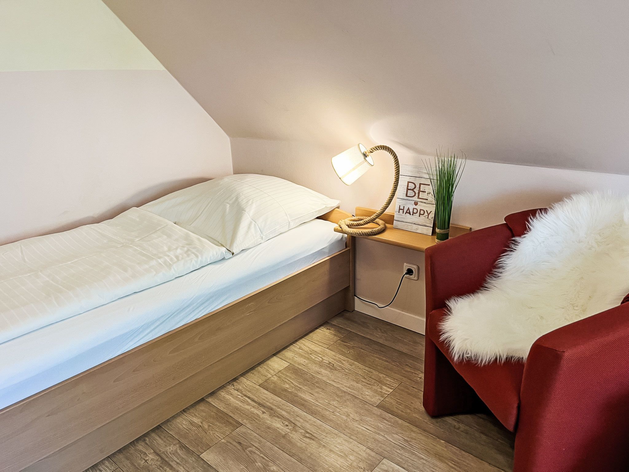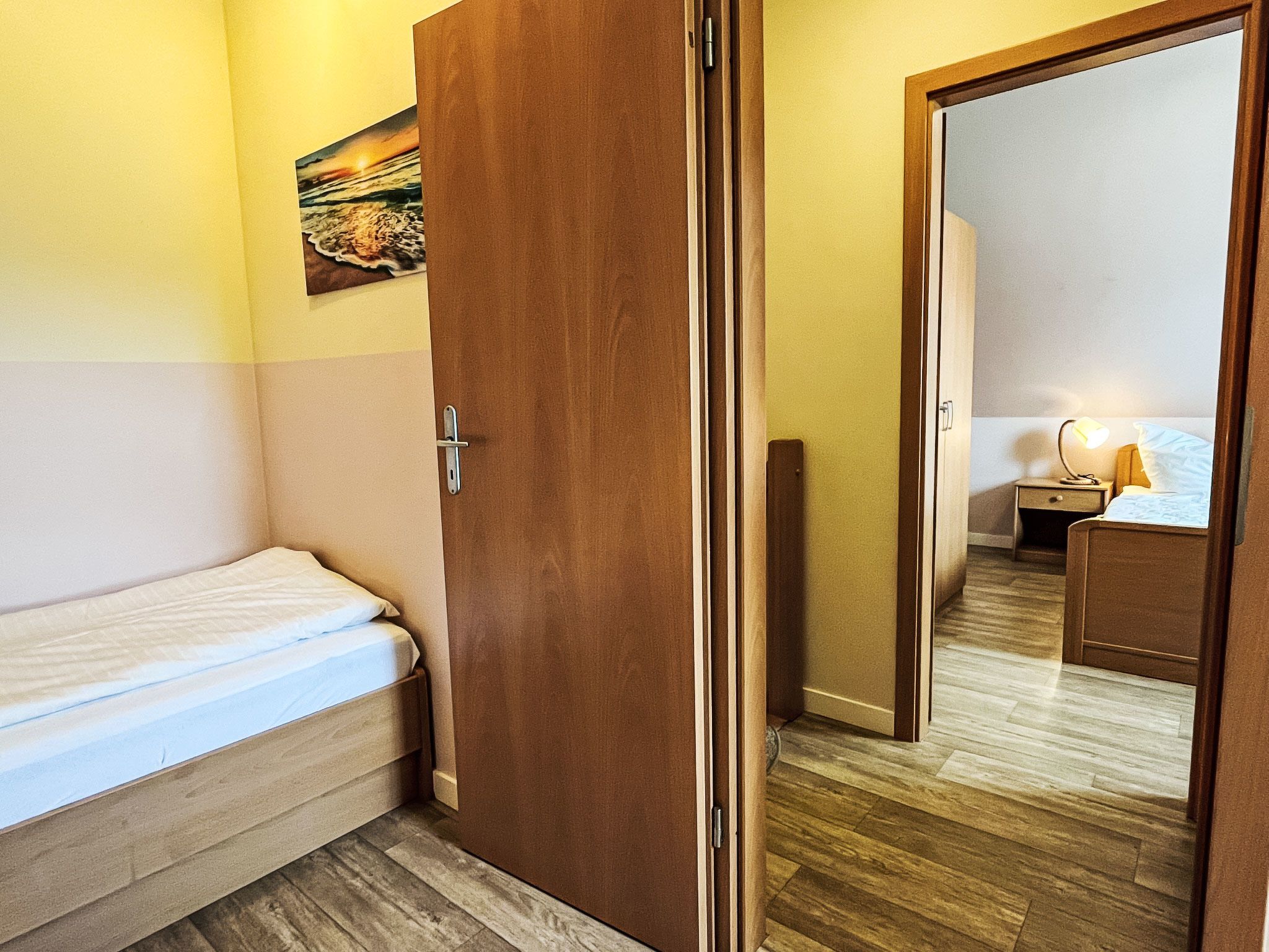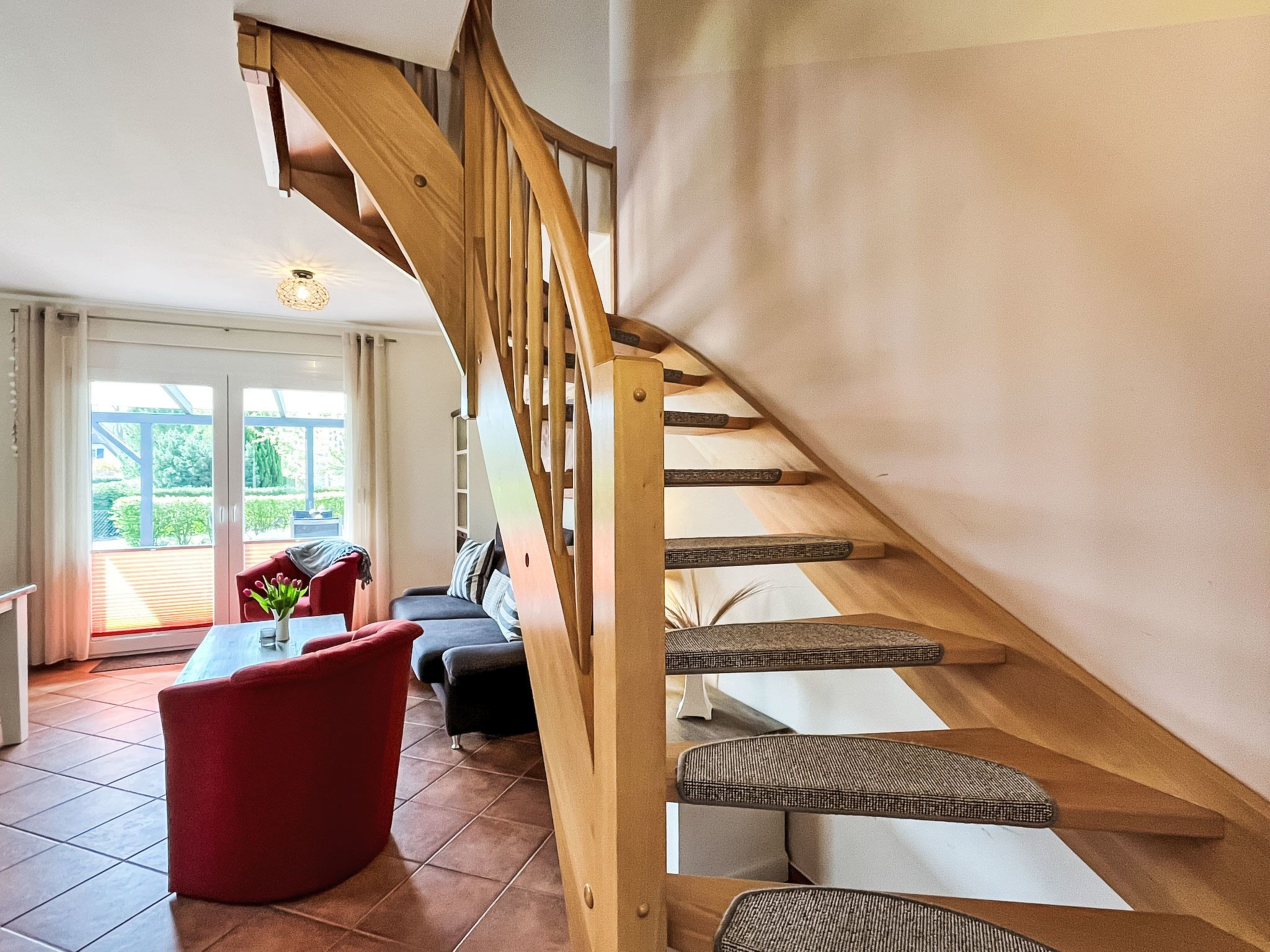 Möwennest + Muschelnest, 6-Zimmer-Haus 120 m2 auf 2 Stockwerken. Schön und geschmackvoll eingerichtet: Wohn-/Esszimmer mit Esstisch, Sat-TV, Radio und CD. Ausgang zur Terrasse. Wohn-/Esszimmer mit Sat-TV, Radio und CD. Ausgang zur Terrasse. Offene Küche (4 Kochplatten, Geschirrspüler, Toaster, Wasserkocher, Mikrowelle, elektrische Kaffeemaschine). 2 Duschen/WC. Obergeschoss: 1 abgeschrägtes Zimmer mit 1 Doppelbett. 1 abgeschrägtes Zimmer mit 2 Betten. 1 abgeschrägtes Zimmer mit 1 Doppelbett. 1 abgeschrägtes Zimmer mit 2 Betten. G-Heizung. Terrasse 8 m2 teilweise überdacht. Terrassenmöbel. Zur Verfügung: Kinderhochstuhl, Babybett (extra). Internet (Wireless LAN, gratis). Bitte beachten: Nichtraucher-Haus. Maximal 2 Haustiere/Hunde erlaubt. Rauchmelder. Keine interne Verbindung zwischen den separaten Wohneinheiten. Jede der beiden getrennten Wohneinheiten verfügt über eine Küche.