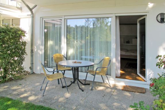 Glowe (GLW650), 1-Zimmer-Wohnung 48 m2, im Erdgeschoss, Südlage. Objekt geeignet für 3 Erwachsene. Gemütlich eingerichtet: Wohn-/Schlafzimmer mit 1 Doppeldiwanbett und 1 Doppelwandschrankbett (2 x 90 cm, Länge 200 cm), Esstisch, Sat-TV und Stereoanlage. Ausgang zur Terrasse. Kleine Kochnische im Eingang (2 Kochplatten, Toaster, elektrische Kaffeemaschine). Dusche/WC. G-Heizung. Holzdielenboden. Terrasse 15 m2. Terrassenmöbel. Zur Verfügung: Kinderhochstuhl, Babybett. Internet (WLAN, gratis). Bitte beachten: Nichtraucher-Unterkunft. Maximal 1 Haustier/Hund erlaubt. Rauchmelder, Feuerlöscher. Flexibilität bei der Bettenaufteilung: Es stehen mehr Schlafmöglichkeiten zur Verfügung als die maximal zugelassene Personenzahl, diese darf dennoch nicht überschritten werden.