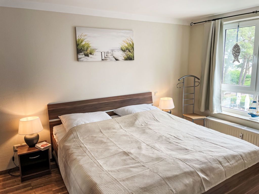 Blaumuschel (LUB118), 3-Zimmer-Wohnung 65 m2 im 2. Stock. Hell, modern eingerichtet: abgeschrägtes Wohn-/Schlafzimmer mit 1 Ausziehbett, Esstisch, Sat-TV, Radio und CD. Ausgang zum Balkon. 1 Zimmer mit 1 Doppelbett und Sat-TV. 1 abgeschrägtes Zimmer mit 2 Betten und Sat-TV. Offene Küche (Backofen, Geschirrspüler, 2 Glaskeramikplatten, Toaster, Wasserkocher, Mikrowelle, Tiefkühler, elektrische Kaffeemaschine). Bad/WC. Balkon. Balkonmöbel, Gartengrill (mobil). Seitliche Sicht auf das Meer. Zur Verfügung: Kinderhochstuhl, Babybett. Internet (Wireless LAN, gratis). Parkplatz (1 Auto). Bitte beachten: Nichtraucher-Unterkunft. Rauchmelder, Feuerlöscher.