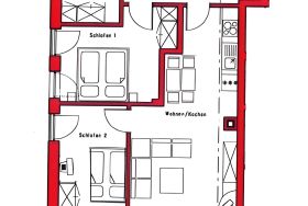 Ihre Ferienwohnung erstreckt sich über 1 Etage, 3 Zimmer (davon 2 Schlafzimmer), ist 75 qm groß und ist für maximal 5 Personen geeignet. An kälteren Tagen kann Ihre Ferienwohnung beheizt werden mit Zentralheizung (Gas) und Fußbodenheizung. für wohlige Wärme steht eine Kamin zur Verfügung Das Rauchen ist in Innenräumen nicht gestattet. Der Eingang ist in der 1. Etage