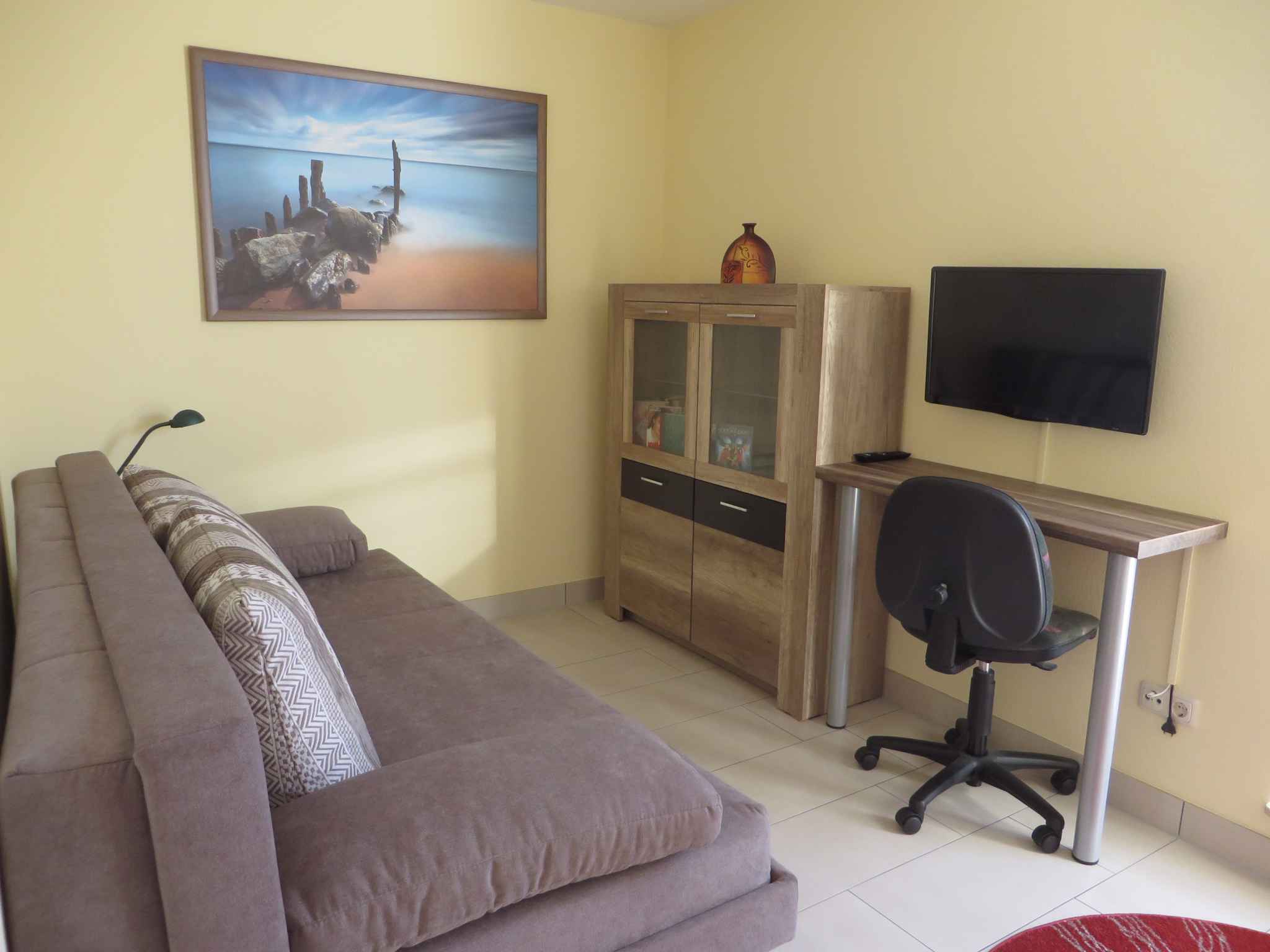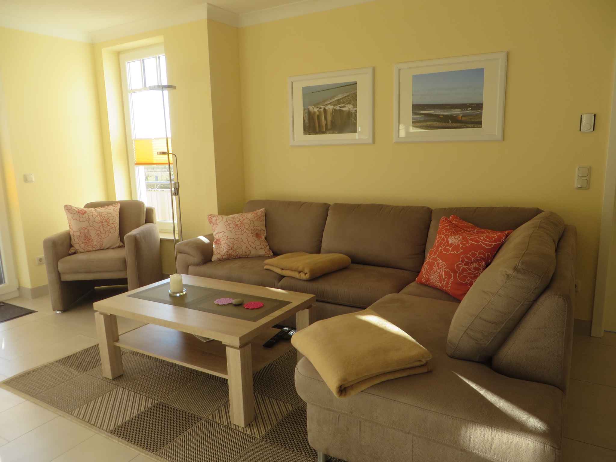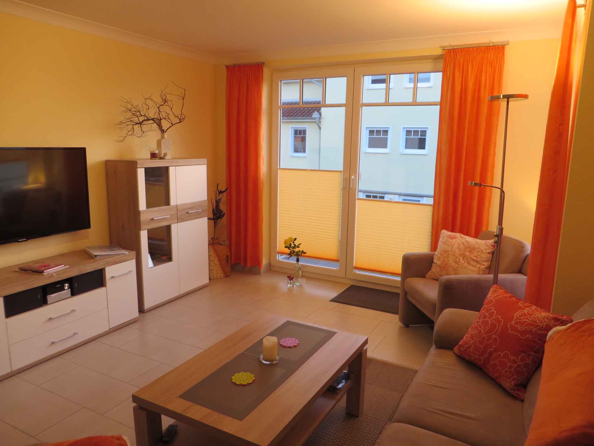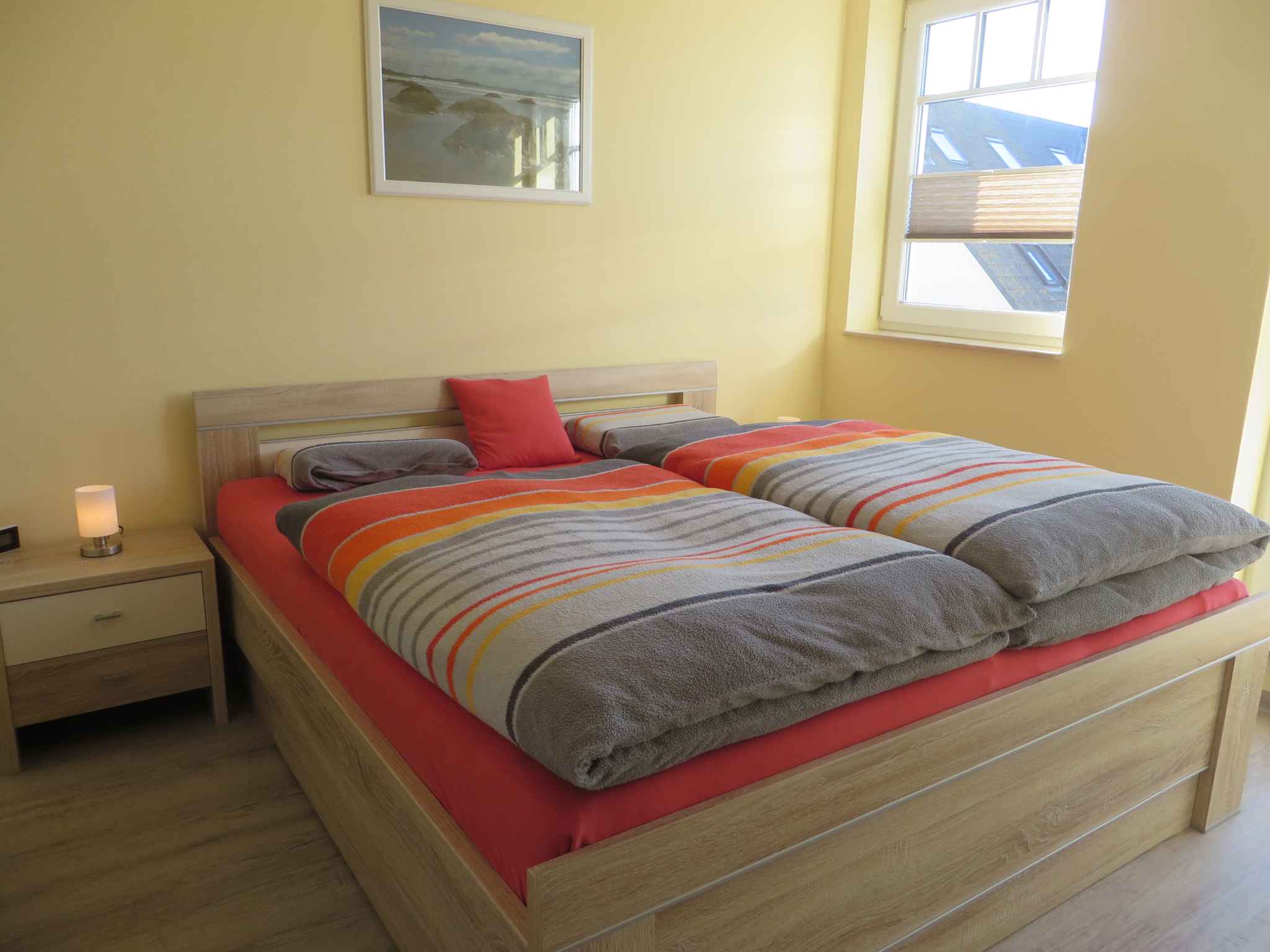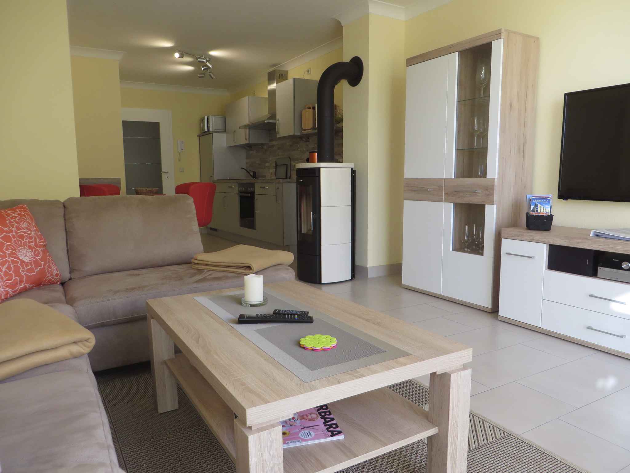 und führt über eine Innentreppe direkt in den Flur mit Garderobe und Türen zu allen Räumen. Die Zimmer teilen sich wie folgt auf:Erdgeschoss: Abstellraum mit Abstellraum für Strand- und Spielgeräte der Gäste. 1. Etage: Abstellraum mit Abstellraum mit Platz für Waschmaschine, Staubsauger und Abstellmöglichkeit. Wohnküche mit Kamin, Sitzecke, Essecke, TV, DVD, Stereoanlage und Balkonausrichtung Südost bis Südwest mit Wind- und Sichtschutz zum Nachbarbalkon. Sie haben Zugang zum Balkon mit Gartenmöbeln, 1 Tisch, 4 Stühlen, 1 Sonnenliege und Sonnenschirm. Schlafzimmer mit 2 Zusatzbetten auf Doppelausziehcouch, TV, DVD, Radio und Mückenschutzgitter mit Pollenschutz und Verdunklungsrollos Bücher, Gesellschaftsspiele, DVD und Spielteppich. Schlafzimmer mit 1 Doppelbett und 1 Zusatzbett (nur für Kinder unter 3 Jahre geeignet) und Mückenschutzgitter mit Pollenschutz und Verdunklungsrollos. Küche in der Wohnküche mit Essecke, Geschirrspüler, Elektroherd (Cerankochfeld, 4 Platten), Backofen, Dunstabzugshaube, Kühlschrank (150 l, Eisfach), Mikrowelle, Kaffeemaschine, Toaster, elektrischem Wasserkocher und komplette Ausstattung in einer Küchenzeile. Die Essecke bietet Platz für 4 Personen. Sie haben Zugang zum Balkon. Bad mit Dusche, 1 Waschbecken, WC, Fenster und 2 Fenster mit Sicht - und Mückenschutz, Dusche offen und ebenerdig. Darüber hinaus ist Ihre Ferienwohnung mit WLAN- Internetzugang, Gitterbett, Kinderstuhl und Waschmaschine ausgestattet. TV- bzw. Rundfunksender können per Satellit empfangen werden.