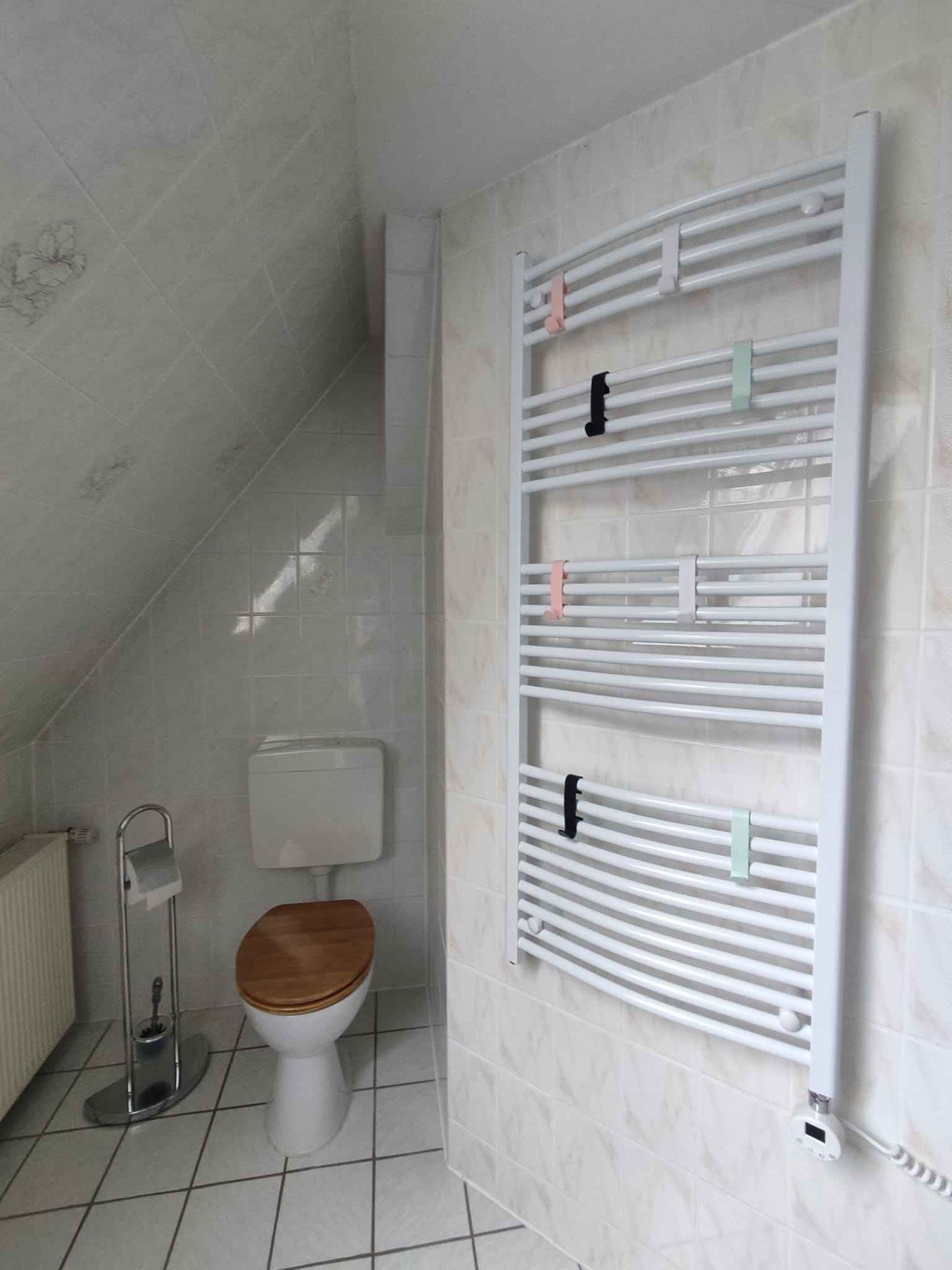 Ihre Ferienwohnung erstreckt sich über 1 Etage, 3 Zimmer (davon 2 Schlafzimmer), ist 74 qm groß und ist für maximal 4 Personen geeignet. An kälteren Tagen kann Ihre Ferienwohnung beheizt werden mit Zentralheizung (Gas). Das Rauchen ist in Innenräumen nicht gestattet. Der Eingang ist im Dachgeschoss und führt über eine Innentreppe direkt in den Flur mit Garderobe und Türen zu allen Räumen. Die Zimmer teilen sich wie folgt auf: Wohnzimmer 16 qm groß und mit Sitzecke und TV. Schlafzimmer 16 qm groß und mit 1 Doppelbett, (unter 3 Jahre geeignet) und 1 Gitterbett. Schlafzimmer 16 qm groß und mit 2 Einzelbetten. Küche 11 qm groß und mit Essecke, Geschirrspüler, Elektroherd (Cerankochfeld), Backofen, Dunstabzugshaube, Kühlschrank (Eisfach), Kaffeemaschine, Toaster und elektrischem Wasserkocher. Die Essecke bietet Platz für 6 Personen. Flur 6 qm groß. Bad 9 qm groß und mit Dusche, 1 Waschbecken, WC und Fenster. Darüber hinaus ist Ihre Ferienwohnung mit WLAN- Internetzugang ausgestattet. TV- bzw. Rundfunksender können per Satellit empfangen werden.