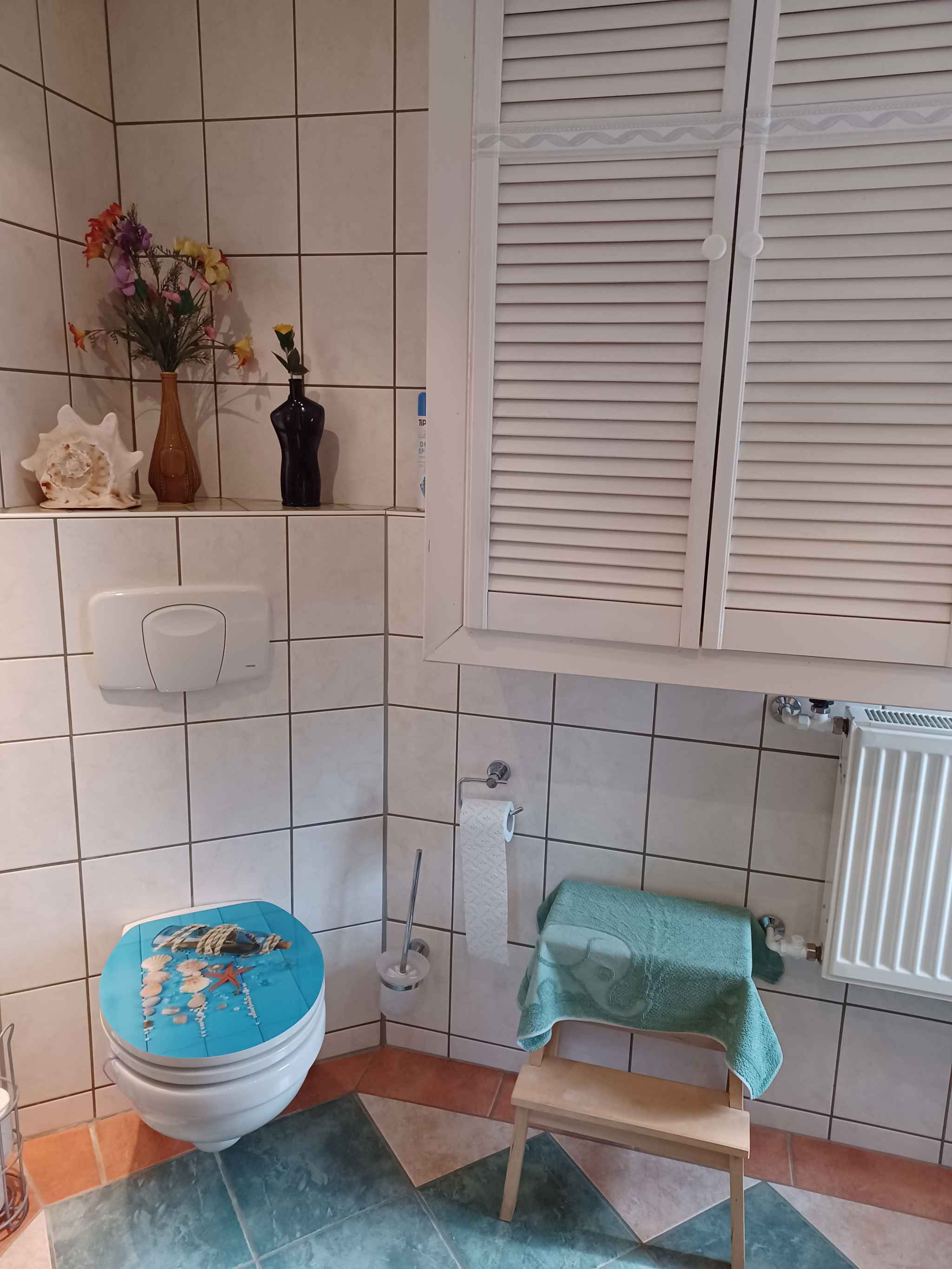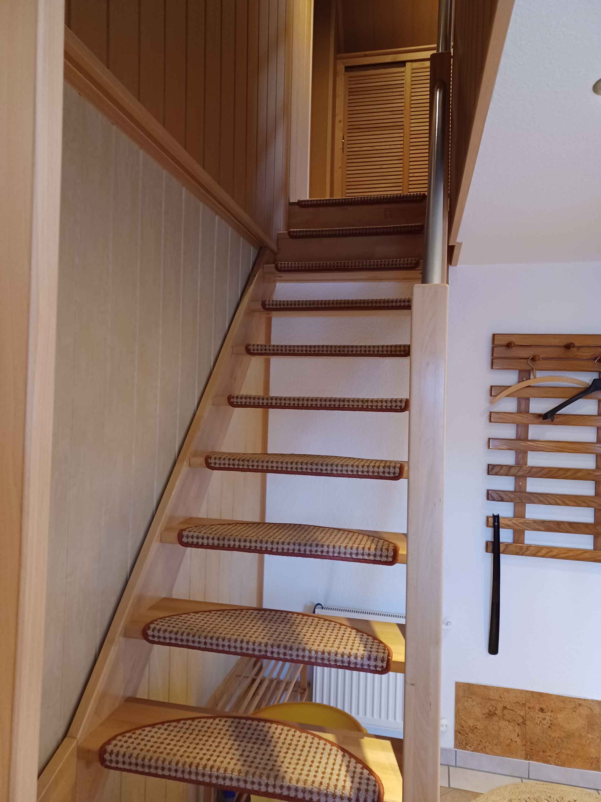Ihre Ferienwohnung erstreckt sich über 2 Etagen, 3 Zimmer (davon 2 Schlafzimmer), ist 60 qm groß und ist für maximal 4 Personen geeignet. An kälteren Tagen kann Ihre Ferienwohnung beheizt werden mit Zentralheizung. Das Rauchen ist in Innenräumen nicht gestattet. Der Eingang ist im Erdgeschoss und führt über 1 Stufe direkt in den Flur mit Garderobe. Die Zimmer teilen sich wie folgt auf:Erdgeschoss: Wohnküche als Durchgangszimmer und mit Sitzecke, TV, DVD und Radio. Kochecke in der Wohnküche mit Essecke, Elektroherd (Cerankochfeld, 4 Platten), Backofen, Dunstabzugshaube, Kühlschrank (Eisfach), Mikrowelle, Kaffeemaschine, Toaster und elektrischem Wasserkocher. Die Essecke bietet Platz für 4 Personen. Bad mit Dusche, 1 Waschbecken, WC, Fenster und Waschmaschine. Dachgeschoss: Schlafzimmer mit 2 Einzelbetten. Schlafzimmer mit 1 Doppelbett. TV- bzw. Rundfunksender können per Satellit empfangen werden.