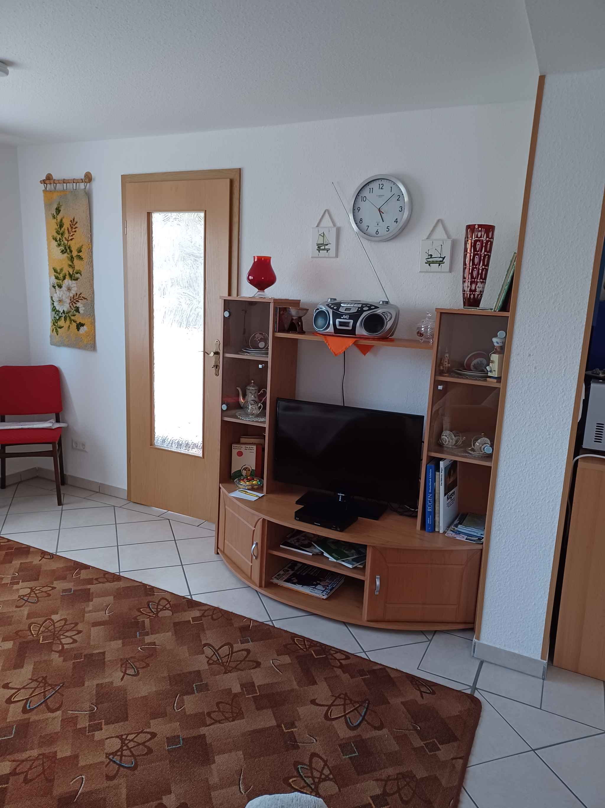 Die Ferienwohnung befindet sich auf einem 1200 qm großen, offenen Gartengrundstück mit Wiese, Blumen, Sträuchern und Bäumen. Der Vermieter wohnt ständig im Haus oder, nutzt jedoch einen separaten Eingang. Die Ausstattungen stehen Ihnen zur gemeinsamen Nutzung zur Verfügung. Relaxen Sie draußen auf der Liegewiese mit Sonnenschirm und Gartenmöbeln. Eine Grillmöglichkeit ist vorhanden.Lage: Sehlen, 23 mNN. Die Ferienwohnung befindet sich in einem einzeln stehenden Einfamilienhaus, wurde im Jahr 2018 renoviert und ist modern und zweckmäßig eingerichtet. Das Grundstück liegt im Ortszentrum. Am Ende der Sackgasse ist kaum mit Verkehr zu rechnen. Auch wegen der ruhigen und sonnigen Lage ist das Domizil beliebt. Die 60 m lange Zufahrt zum Grundstück erfolgt über eine Nebenstraße. Am Haus stehen Ihnen 2 Pkw-Parkplätze auf dem Grundstück zur Verfügung. Die nächste Einkaufsmöglichkeit ist 5 km entfernt und Restaurant 500 m. Kino in Bergen 7 km. Hallenbad, Sauna jeweils 9 km in Samtens. Bahnhof, Diskothek jeweils 2 km in Teschenhagen. Störtebeker Festspiele von Ende Juni bis Anfang September in Ralswiek 15 km, Stralsund 30 km, Seebäder 20 - 25 km.Im Sommer: Ostsee in Binz/Prora 20 km, Sandstrand. Zur Bootsanlegestelle in Lauterbach sind es 11 m. Weitere Sport- und Freizeitangebote warten auf Sie in der Umgebung. Zum Beispiel Tennis in Bergen 7 km. Golf in Karnitz 3 km. Reiten in Tegelhof 2 km.