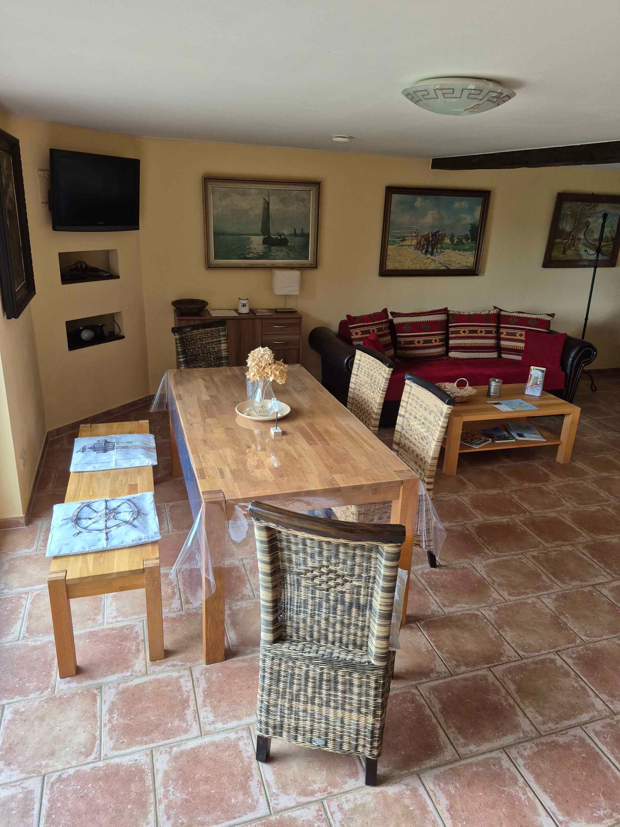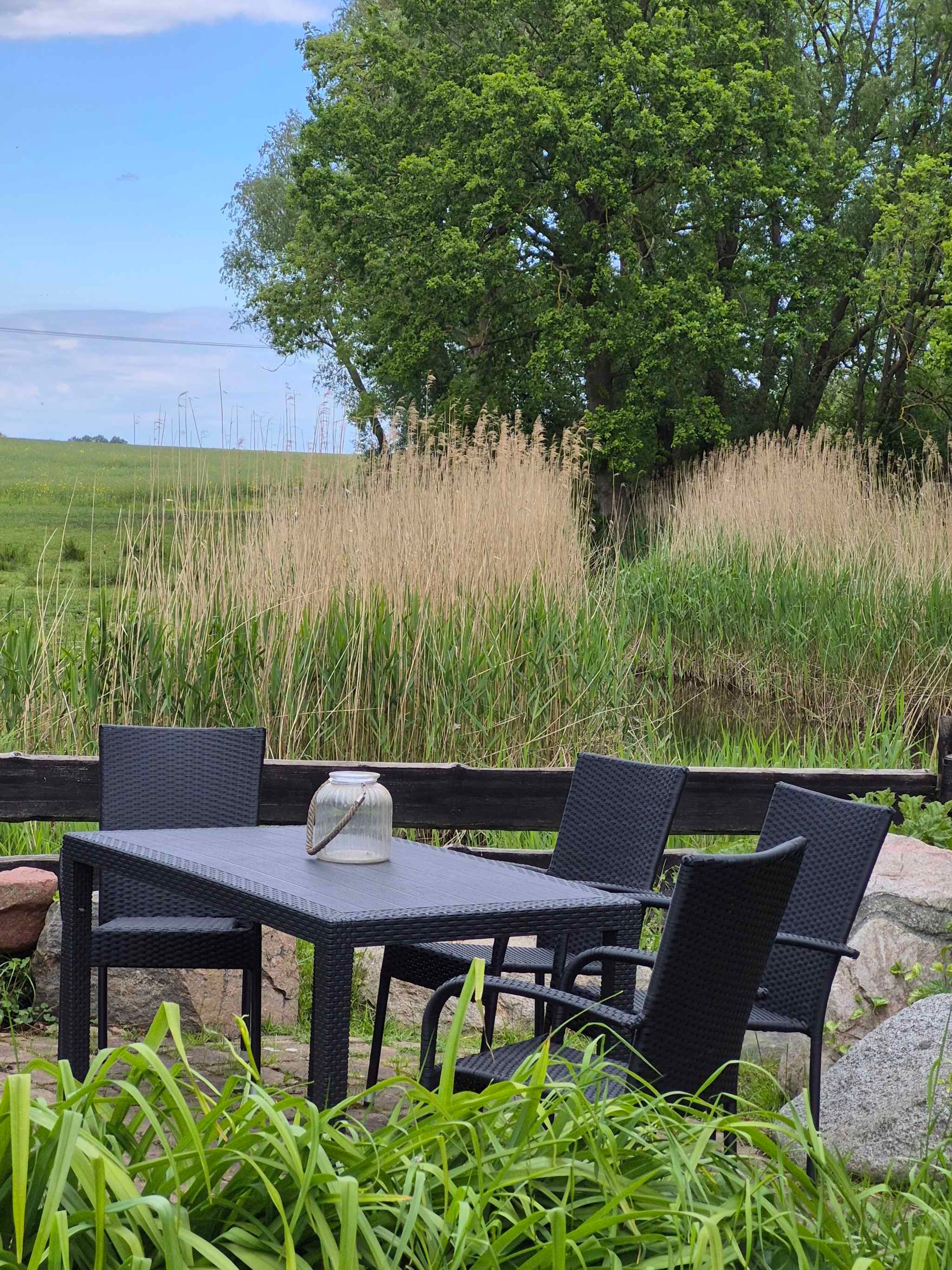 Das Ferienhaus befindet sich auf einem 800 qm großen, offenen Gartengrundstück mit Wiese, Blumen und Sträuchern. Das Ferienhaus ist eine ca 250 Jahre alte Schmiede, die liebevoll restauriert und zum Doppelhaus umgebaut wurde. Der Vermieter wohnt in einem separaten Gebäude auf dem Grundstück. Relaxen Sie draußen auf der Terrasse oder der Liegewiese mit Sonnenliege und Gartenmöbeln. Der Spielplatz mit Sandkasten lässt Kinderherzen höher schlagen. Eine Grillmöglichkeit ist vorhanden. Romatische Abende verspricht der Lagerfeuerplatz. Nutzung des Ruderbootes, Angeltouren und Räucherei nach Absprache vor Ort. Information für Haustierbesitzer: die Vermieter bitten darum, dass sich Haustiere nur im Erdgeschoss aufhalten. Ihre Fitness können Sie mit Ruderboot auf Trab halten.Lage: Garz/Rügen. Das 2010 renovierte Ferienhaus ist modern eingerichtet. Das Grundstück befindet sich am Ortsrand. Auch wegen der ruhigen und sonnigen Lage ist das Domizil beliebt. Das Haus liegt direkt am Naturschutzgebiet Schoritzer Wiek. Am Ferienhaus stehen Ihnen 2 Pkw-Parkplätze auf dem Grundstück zur Verfügung. Die nächste Einkaufsmöglichkeit ist 5 km entfernt, Restaurant 2 km und Ortszentrum 6 km. Bahnhof, Hallenbad, Sauna jeweils 15 km in Samtens. Diskothek in Teschenhagen 20 km. In der Umgebung gibt es Wander- und Radwege am Wasser entlang. Im Ort: Ernst-Moritz-Arndt-Haus mit Gutspark, Lamp Galery, Bushaltestelle. Waschsalon und Fahrradverleih 5 km.Im Sommer: Ostsee (Greifswalder Bodden) in Gelbe Ufer 500 m, Sandstrand mit Wiese in Palmer Ort, 5 km von Ihrer Unterkunft entfernt. Zur Bootsanlegestelle in Puddemin sind es 2 km. Petrijünger können in Groß Schoritz, 500 m die Angel auswerfen. Weitere Sport- und Freizeitangebote warten auf Sie in der Umgebung. Zum Beispiel Reiten in Altkamp 15 km. Golf in Karnitz 10 km. Tennis, Minigolf jeweils 15 km in Samtens. Viele Naturstrände in der Umgebung.