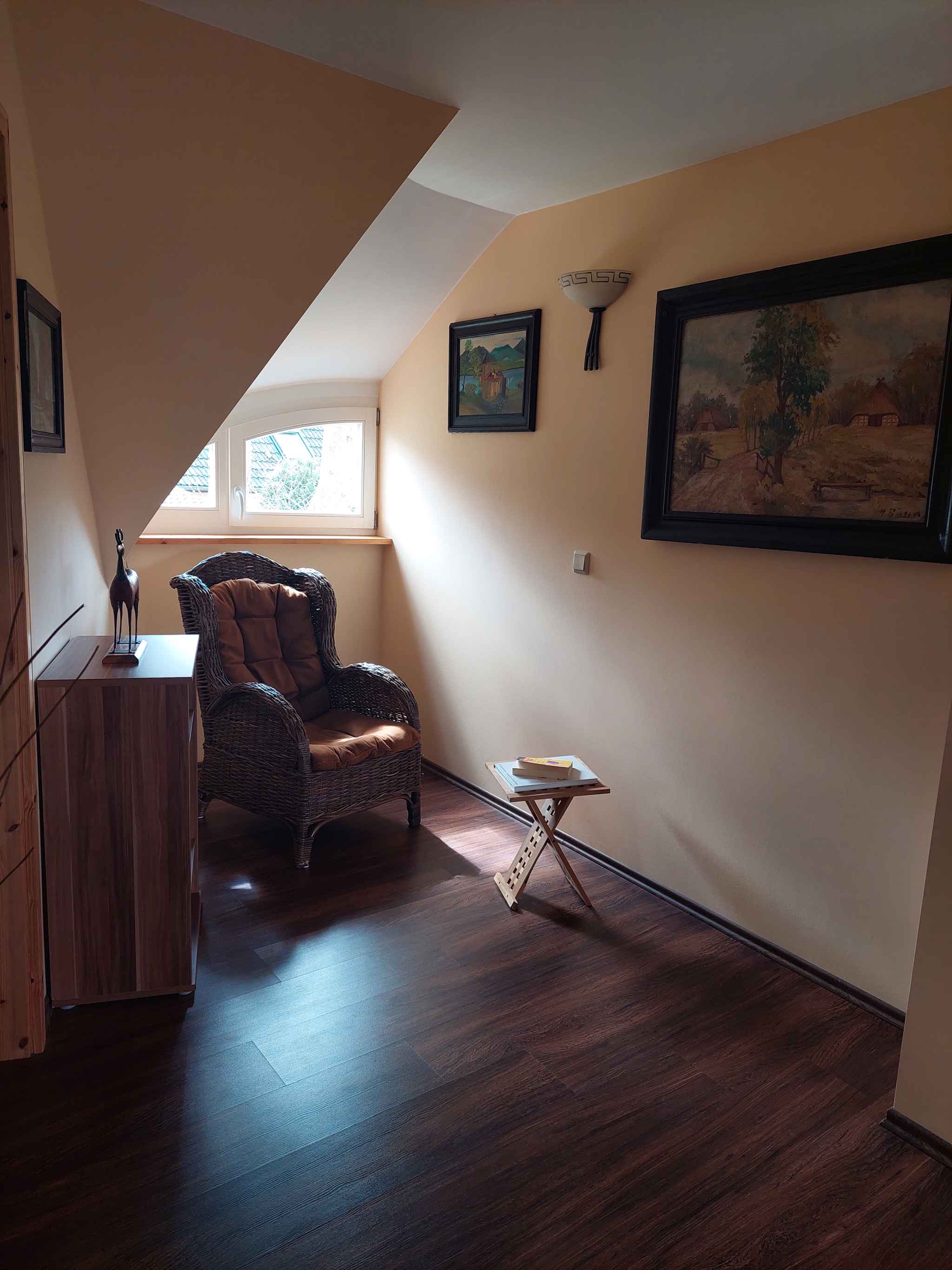 Das Ferienhaus befindet sich auf einem 800 qm großen, offenen Gartengrundstück mit Wiese, Blumen und Sträuchern. Weiterhin verfügt das Anwesen über einen Hof. Das Ferienhaus ist eine ca 250 Jahre alte Schmiede, die liebevoll restauriert und zum Doppelhaus umgebaut wurde. Der Vermieter wohnt in einem separaten Gebäude auf dem Grundstück. Relaxen Sie draußen auf der Terrasse oder der Liegewiese mit Sonnenliege und Gartenmöbeln. Der Spielplatz mit Sandkasten lässt Kinderherzen höher schlagen. Eine Grillmöglichkeit ist vorhanden. Romatische Abende verspricht der Lagerfeuerplatz. Nutzung des Ruderbootes, Angeltouren und Räucherei nach Absprache vor Ort. Information für Haustierbesitzer: die Vermieter bitten darum, dass sich Haustiere nur im Erdgeschoss aufhalten. Ihre Fitness können Sie mit Ruderboot auf Trab halten.Lage: Garz/Rügen. Das 2010 renovierte Ferienhaus ist modern eingerichtet. Das Grundstück befindet sich am Ortsrand. Auch wegen der ruhigen und sonnigen Lage ist das Domizil beliebt. Das Haus liegt direkt am Naturschutzgebiet Schoritzer Wiek. Am Ferienhaus stehen Ihnen 2 Pkw-Parkplätze auf dem Grundstück zur Verfügung. Die nächste Einkaufsmöglichkeit ist 5 km entfernt, Restaurant 2 km und Ortszentrum 6 km. Bahnhof, Hallenbad, Sauna jeweils 15 km in Samtens. Diskothek in Teschenhagen 20 km. Hauptstraße 10 m. In der Umgebung gibt es Wander- und Radwege am Wasser entlang. Im Ort: Ernst-Moritz-Arndt-Haus mit Gutspark, Lamp Galery, Bushaltestelle. Waschsalon und Fahrradverleih 5 km.Im Sommer: Ostsee (Greifswalder Bodden), Sandstrand mit Wiese in Palmer Ort, 5 km von Ihrer Unterkunft entfernt. Zur Bootsanlegestelle in Puddemin sind es 2 km. Petrijünger können in Groß Schoritz, 500 m die Angel auswerfen. Weitere Sport- und Freizeitangebote warten auf Sie in der Umgebung. Zum Beispiel Reiten in Altkamp 15 km. Golf in Karnitz 10 km. Tennis, Minigolf jeweils 15 km in Samtens. Viele Naturstrände in der Umgebung.