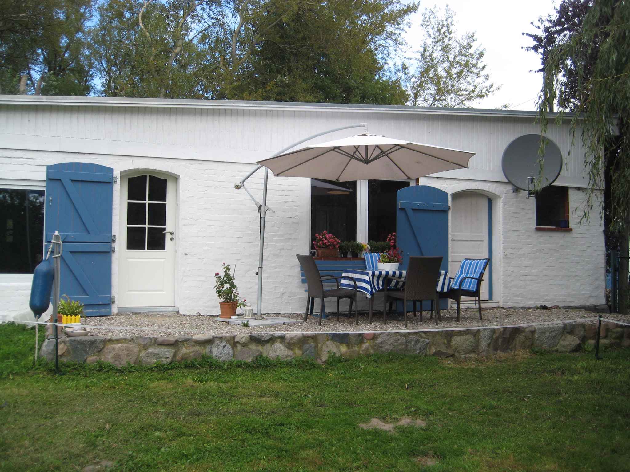 Das Ferienhaus befindet sich auf einem 5000 qm großen, geschlossenen Gartengrundstück mit Wiese, Blumen, Sträuchern und Bäumen. Das Grundstück ist mit einem Zaun und einer Hecke umschlossen. Weiterhin verfügt das Anwesen über einen Hof. Das ehemalige Stallgebäude wurde mit viel Liebe zum Detail zum Ferienhaus umgebaut. Teilweise befinden sich sehr alte restaurierte Möbelstücke im Haus. Die Mischung aus Alt und Neu gibt den besonderen Flair. Auf dem Hof leben Ponys, Hund und Katzen. große Sonnenwiese Der Vermieter wohnt in einem separaten Gebäude auf dem Grundstück. Die Ausstattungen stehen Ihnen zur alleinigen Nutzung zur Verfügung. Relaxen Sie draußen auf der Terrasse oder der Liegewiese mit Sonnenschirm, Sonnenliege und Gartenmöbeln. Eine Grillmöglichkeit ist vorhanden. Romatische Abende verspricht der Lagerfeuerplatz. Strandkorb. Ihre Fitness können Sie mit 2 Fahrrädern, Fitnessgeräten, Ruderboot, Motorboot und Segelboot auf Trab halten.Lage: Puddemin. Das einzeln stehende und 2014 renovierte Ferienhaus ist rustikal eingerichtet. Das Grundstück befindet sich am Ortsrand. Auch wegen der ruhigen und sonnigen Lage am Wasser ist das Domizil beliebt. Die 50 m lange Zufahrt zum Grundstück erfolgt über eine asphaltierte Nebenstraße. Am Ferienhaus stehen Ihnen 2 Pkw-Parkplätze auf dem Grundstück zur Verfügung. Öffentliche Parkplätze befinden sich auf der Straße vor dem Haus. Die nächste Einkaufsmöglichkeit ist 5 km entfernt, Restaurant 50 m und Ortszentrum 5 km. Kino in Bergen 12 km. Apotheke, Bank jeweils 3 km in Garz. Arzt in Poseritz Praxis Henninger 3 km. Flughafen in Rostock Laage 120 km. Bahnhof, Hallenbad, Sauna, Diskothek jeweils 8 km in Samtens.Im Sommer: Puddeminer Wiek Bootssteg in Puddeminer Wiek 50 m, privater Sandstrand mit Wiese, Kies und Steinen in Palmer Ort, 5 km von Ihrer Unterkunft entfernt. Hier ist auch FKK möglich. Ihr vierbeiniger Begleiter ist herzlich willkommen am Hundestrand in Palmer Ort, 5 km. Für die Nautiker unter Ihnen gibt es in am Hafen Puddemin einen Bootsverleih, 50 m. Zur Bootsanlegestelle in am Hafen Puddemin sind es 50 m. Petrijünger können in am Hafen Puddemin, 50 m die Angel auswerfen. Weitere Sport- und Freizeitangebote warten auf Sie in der Umgebung. Zum Beispiel Tennis, Minigolf jeweils 8 km in Bergen. Golf in Karnitz GC Schloß Karnitz 5 km. Reiten in Poseritz 4 km. Hafen 50 m