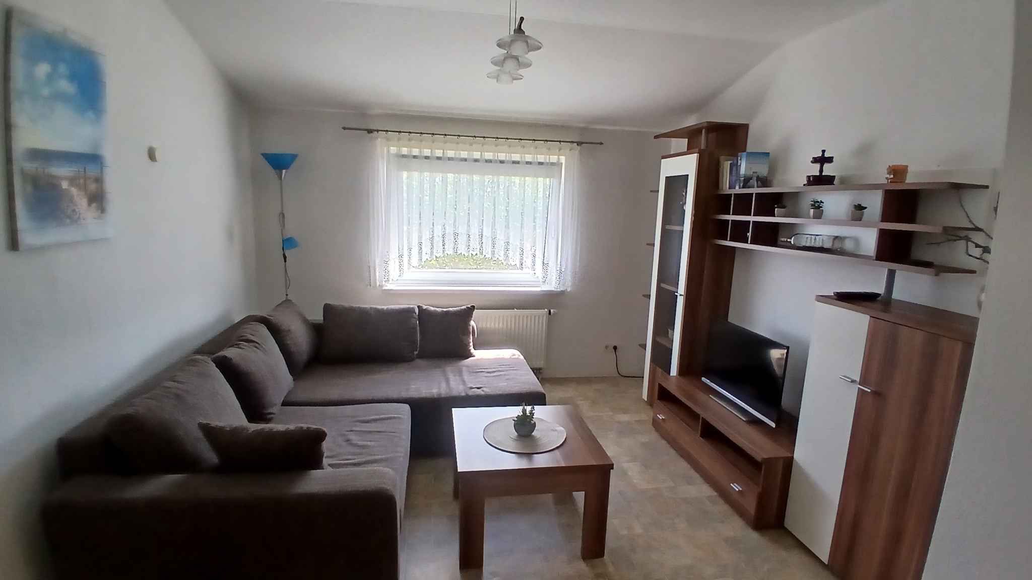 Ihre Ferienwohnung erstreckt sich über 2 Etagen, 2 Zimmer (davon 1 Schlafzimmer), ist 48 qm groß und ist für maximal 4 Personen geeignet. An kälteren Tagen kann Ihre Ferienwohnung beheizt werden mit Zentralheizung. Das Rauchen ist in Innenräumen nicht gestattet. Der Eingang ist im Erdgeschoss und führt direkt in die Küche. Die Zimmer teilen sich wie folgt auf:Erdgeschoss: Küche mit Essecke, Elektroherd (2 Platten), Kühlschrank (Eisfach), Kaffeemaschine, Toaster und elektrischem Wasserkocher. Die Essecke bietet Platz für 4 Personen. Bad mit Dusche, 1 Waschbecken und WC. Obergeschoss: Wohn/Schlafzimmer als Durchgangszimmer und mit 2 Zusatzbetten auf Couch/Sofa, Sitzecke und TV. Schlafzimmer mit 1 Doppelbett. Darüber hinaus ist Ihre Ferienwohnung mit WLAN- Internetzugang ausgestattet. TV- bzw. Rundfunksender können per Satellit empfangen werden.