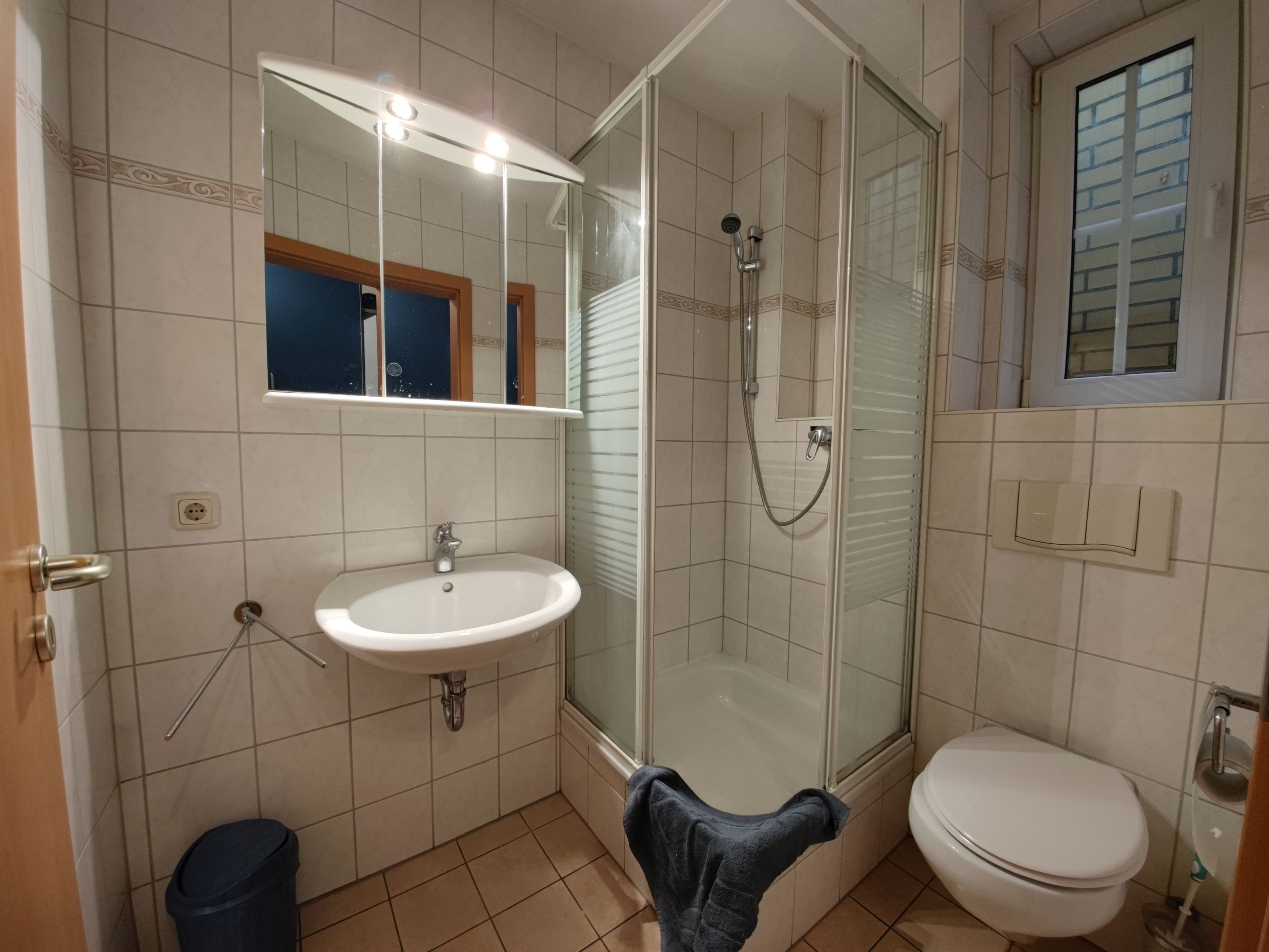 Das Bad verfügt über Dusche und WC. An kühleren Tagen sorgt eine Fußbodenheizung für angenehme Wärme.