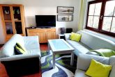 Im Erdgeschoss befindet sich der großzügige und lichtdurchflutete Wohn- und Essbereich, mit angrenzender, voll ausgestatteter Küche (Kühlschrank mit Gefrierfach, Herd, Backofen, Mikrowelle, Spülmaschine) sowie Zugang zur großen teilüberdachten Terrasse mit Mobiliar. Im Wohnzimmer befindet sich außerdem ein Flachbild-TV.