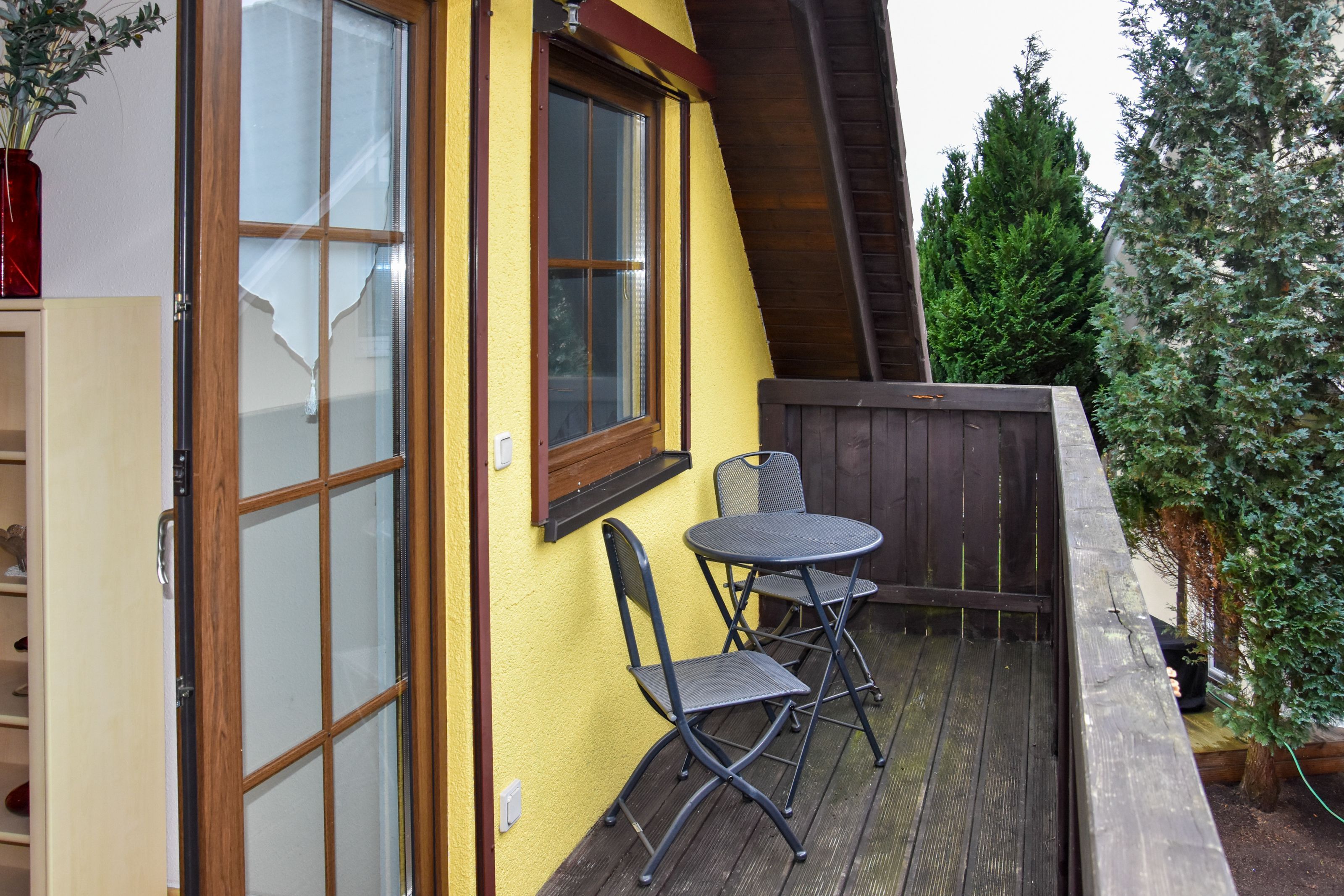 Über die Treppe gelangen Sie ins Obergeschoss (mit charmanten Dachschrägen), wo eine weitere Diele auf Sie wartet. Hier erwartet Sie ein gemütlicher Wohnraum mit Sitzgruppe und Zugang zum Balkon der perfekte Ort, um den Tag bei einem Glas Wein ausklingen zu lassen.