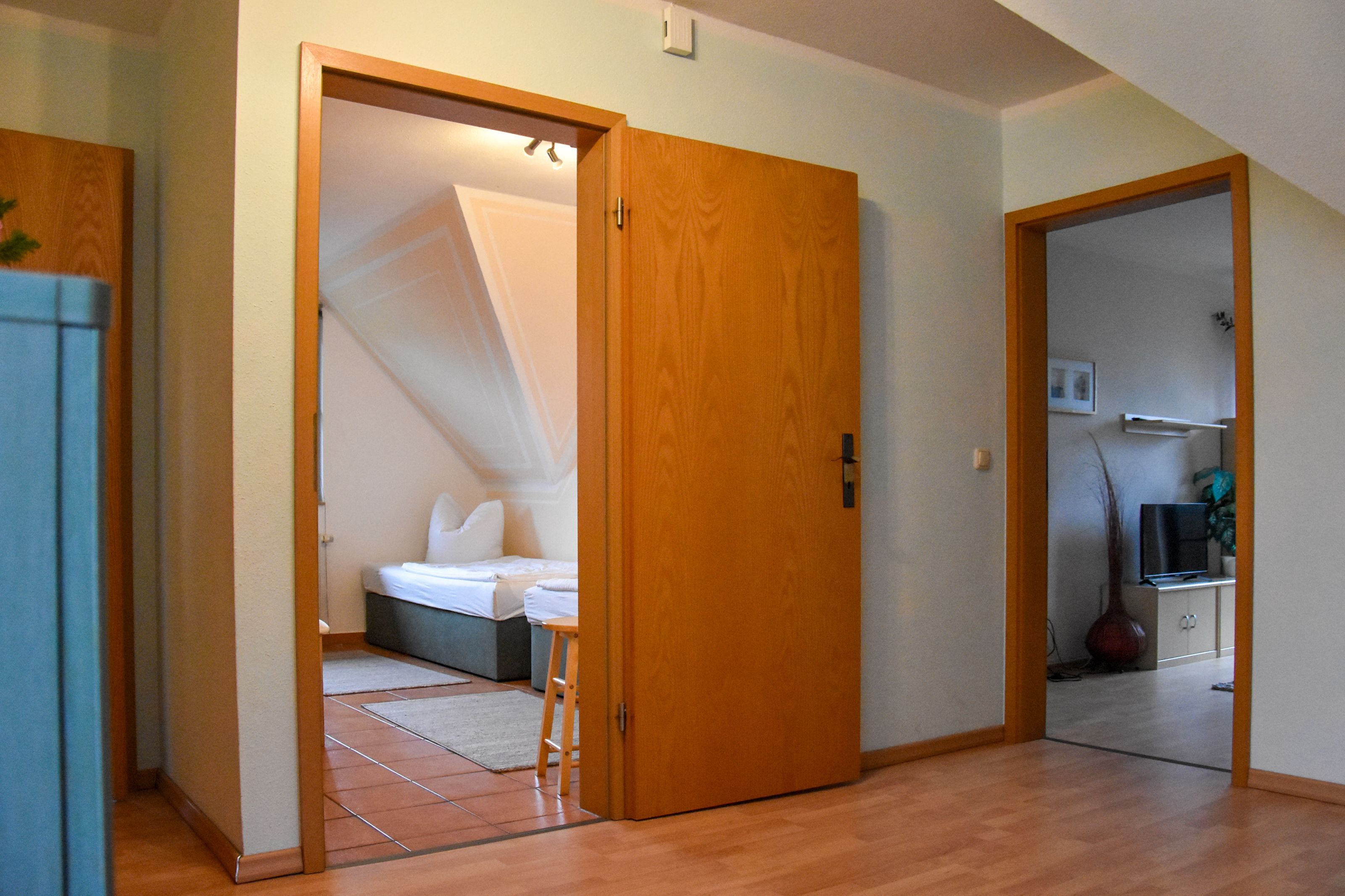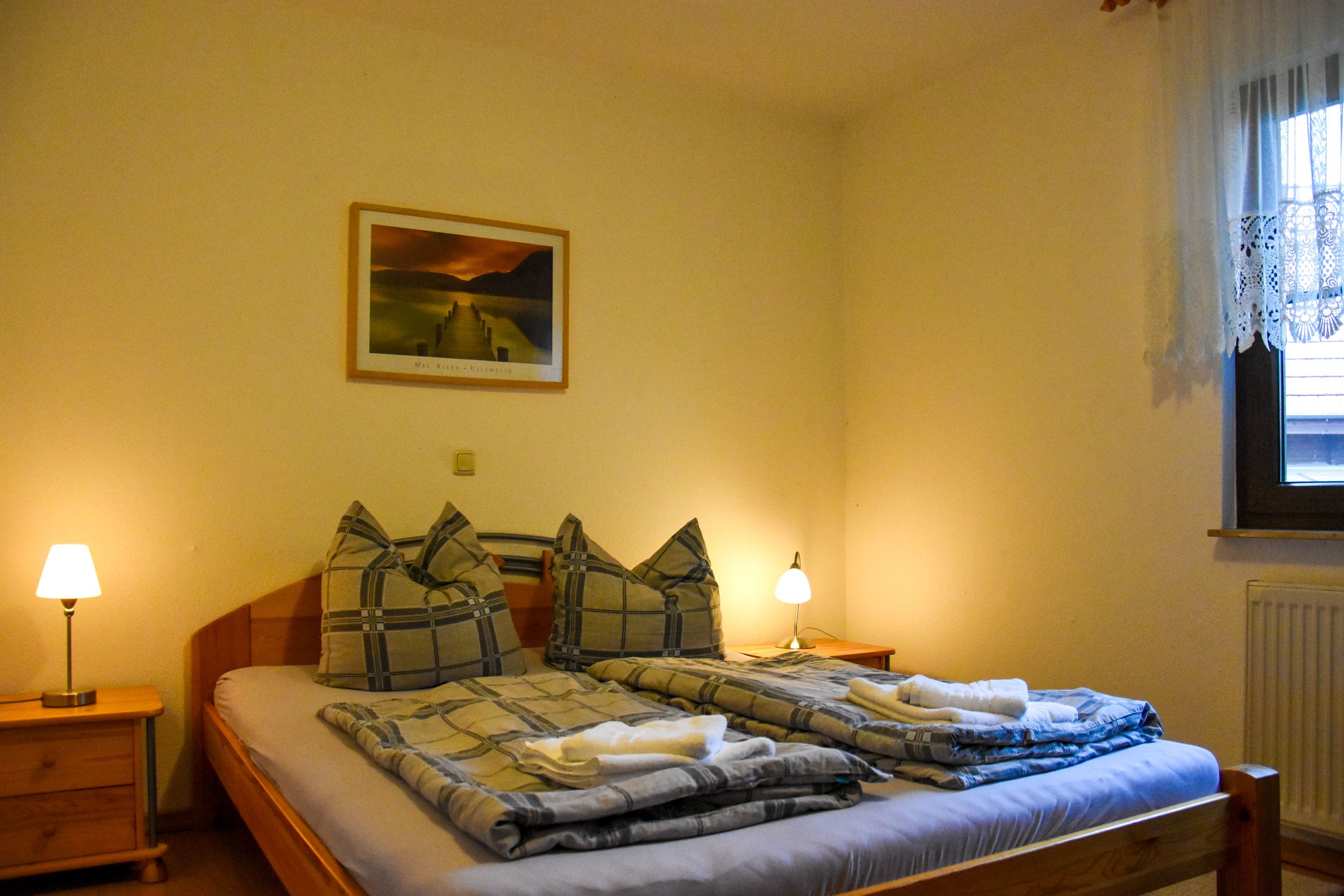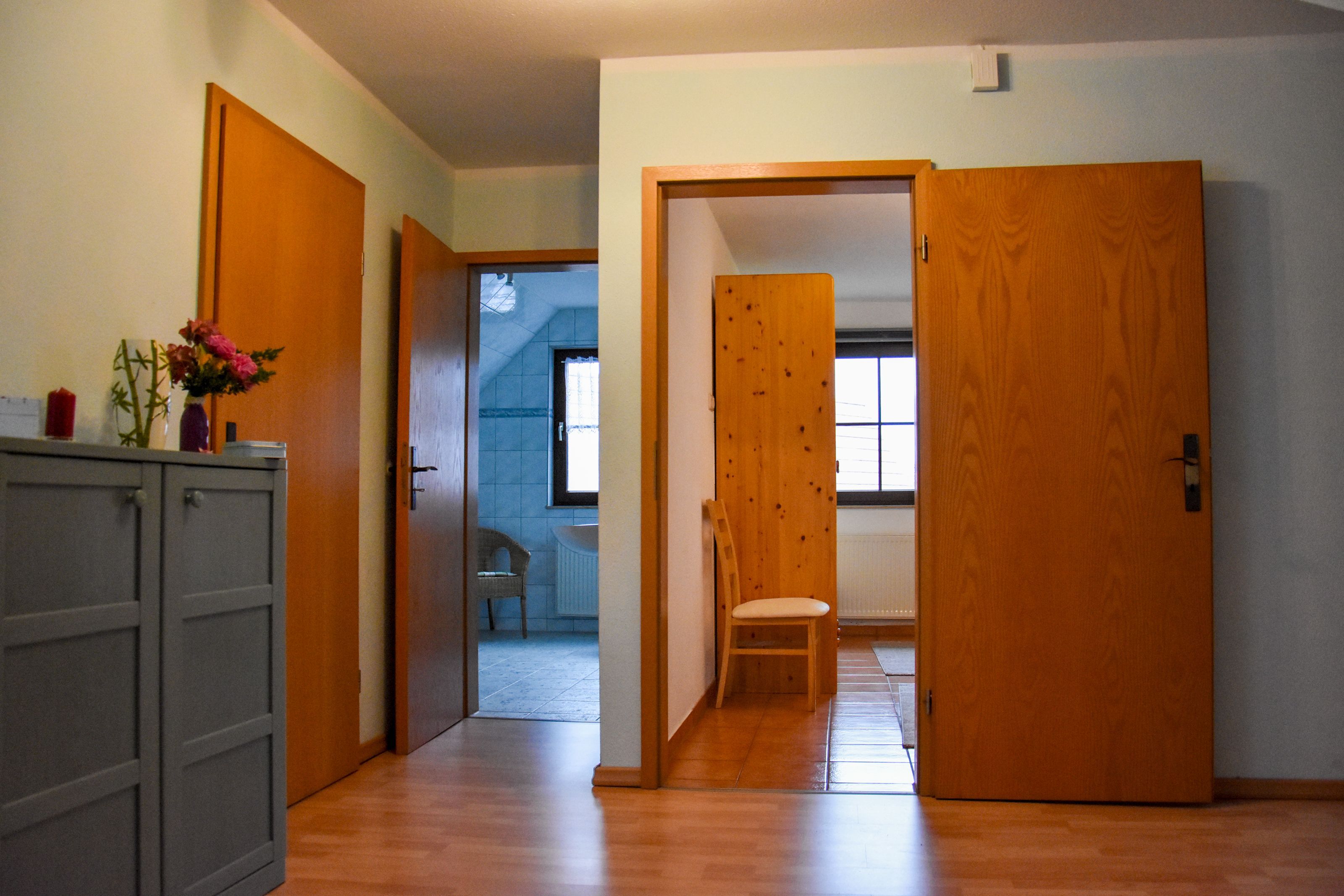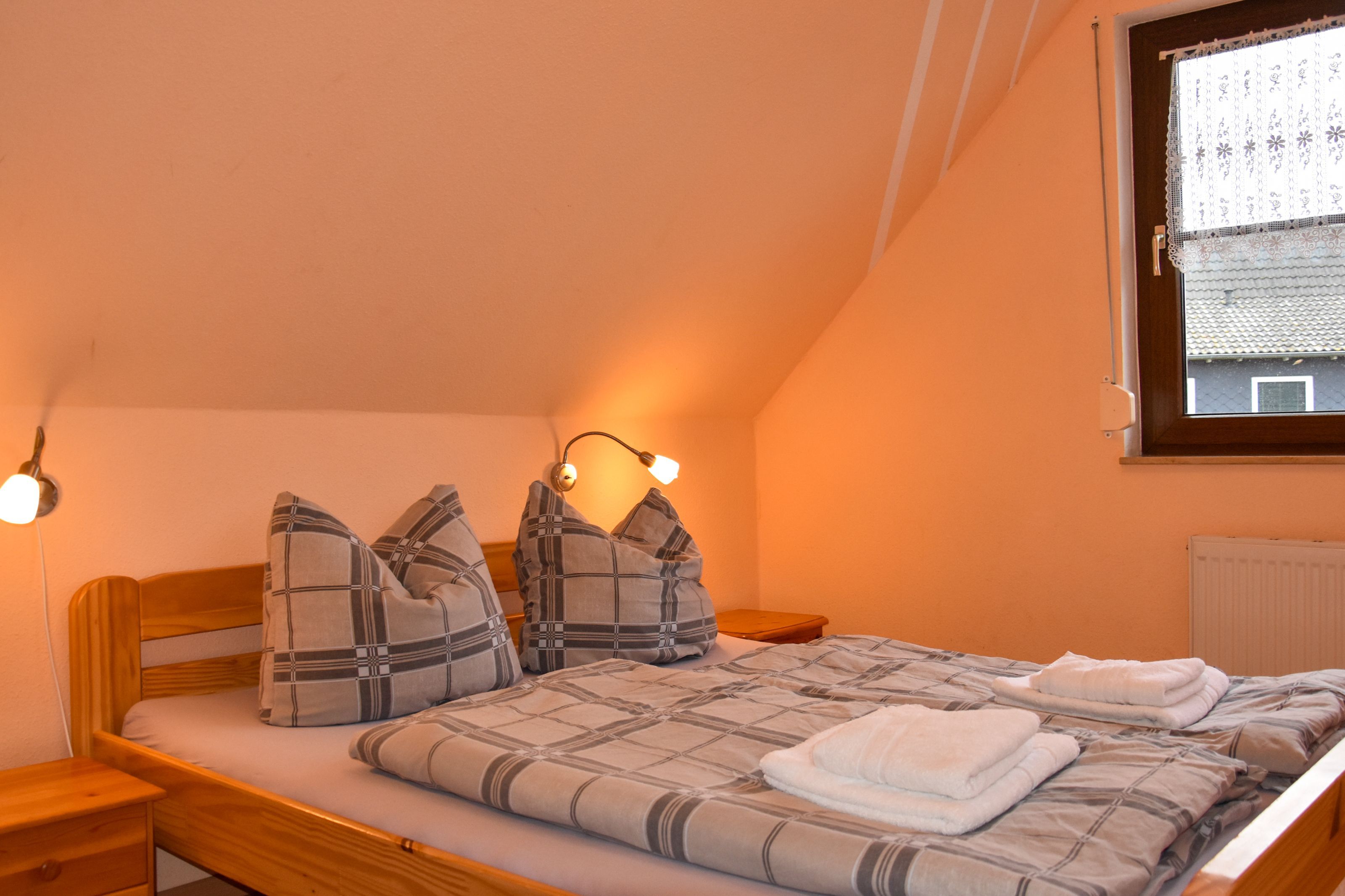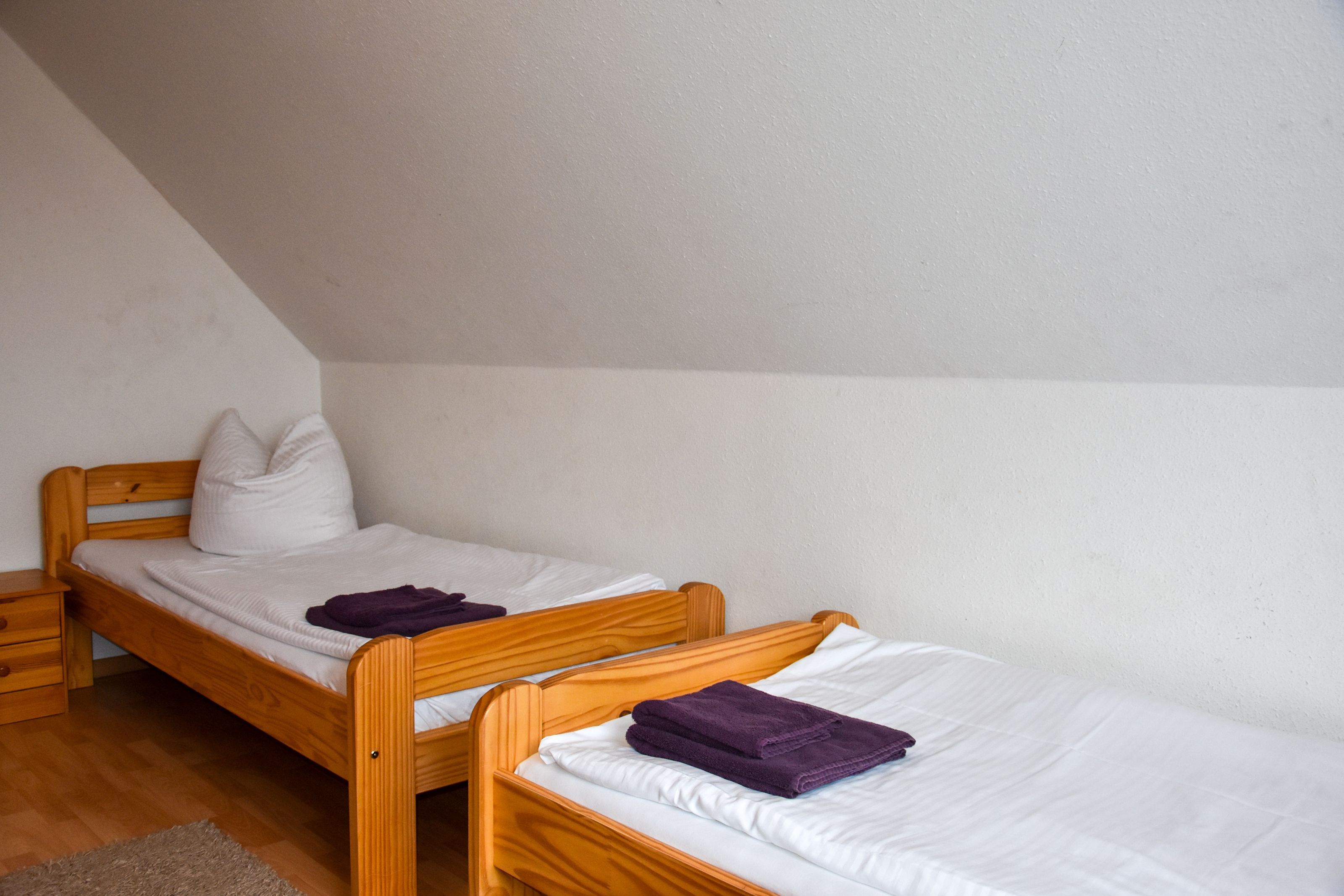 Insgesamt stehen Ihnen zwei Doppelzimmer und zwei Zweibettzimmer zur Verfügung, die alle liebevoll eingerichtet sind. Das Obergeschoss bietet außerdem ein weiteres Badezimmer mit Eckbadewanne und WC sowie eine separate Dusche mit WC.