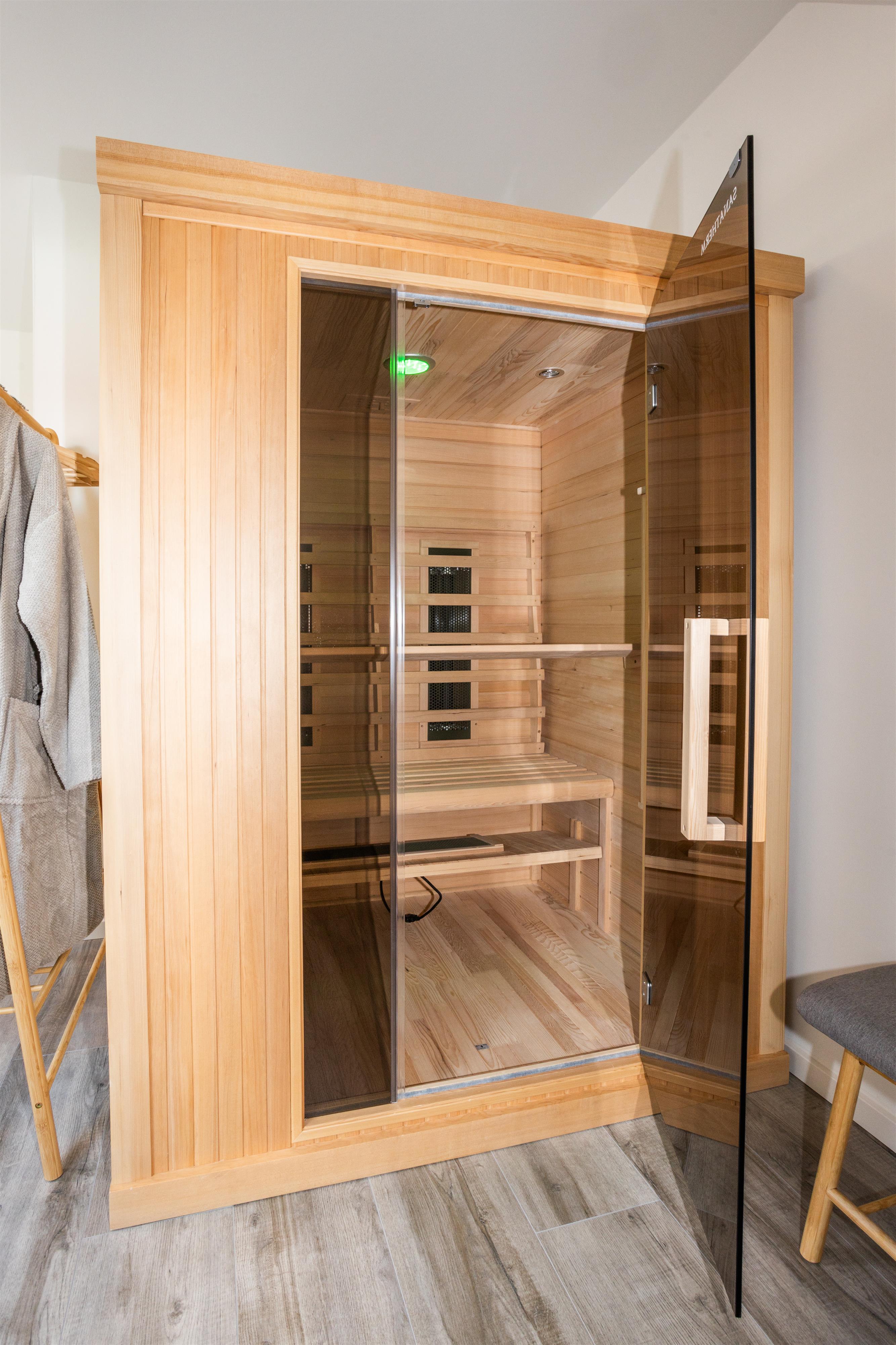 • Sichtgeschützte Outdoorsauna mit Ruhebereich