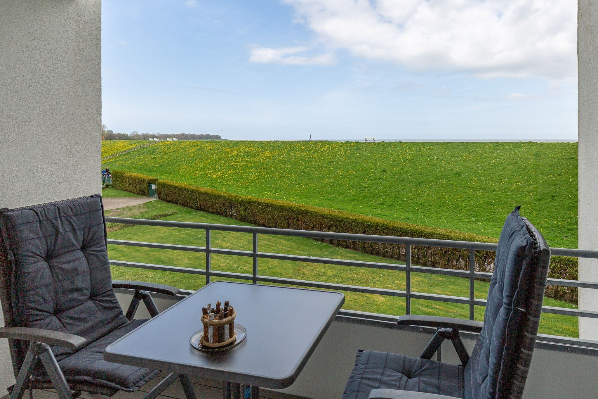 Die vollausgestattete Küchenzeile bietet neben einem 2-Zonenherd, einen Backofen und einen Geschirrspüler sowie alle Annehmlichkeiten, die Sie in Ihrem Urlaub erwarten. Ein Smart-TV und kostenloses WLAN sorgen für beste Unterhaltung. Ein komfortables Doppelbett im Schlafzimmer gewährleistet, dass Sie sich auch im Schlaf erholen. Auch vom möblierten Balkon genießen Sie den traumhaften Meerblick. Die Wohnung verfügt über ein modernes Bad mit ebenerdiger Dusche.