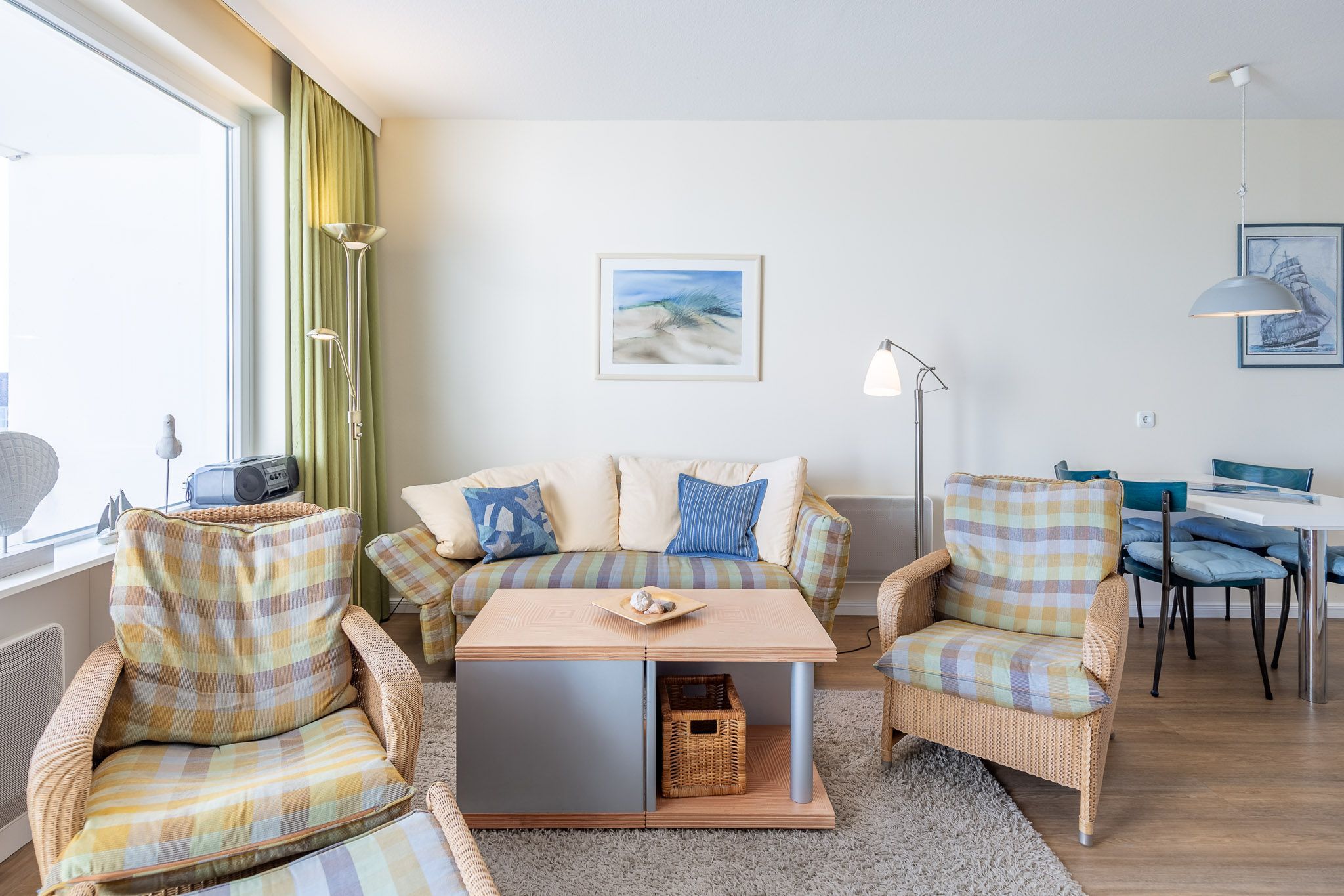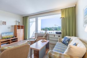 Nach einem erlebnisreichen Tag laden ein Sofa und zwei Sessel zum Verweilen ein. Dank LCD-Fernseher müssen Sie auch im Urlaub nicht auf Ihre Lieblingsserie verzichten. Eine kleine Küchenzeile ist im Wohnbereich integriert. Die 2-Zimmer Ferienwohnung besticht durch ein gemütliches Ambiente. Das separate Schlafzimmer bietet 2 Einzelbetten, die sich auf Wunsch zu einem Doppelbett zusammenschieben lassen.