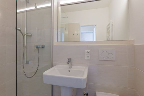 Die 32 m² Ferienwohnung bietet ausreichend Platz für 2 Personen. Der kombinierte Wohn- und Schlafbereich ist mit einem komfortablem Doppelbett ausgestattet. Ein Sofa lädt zum Verweilen ein. Währenddessen sorgen kostenloses WLAN und ein Flachbild-TV für beste Unterhaltung. Die integrierte Küche ist mit einem 2-Zonen Cerankochfeld, einer Mikrowelle, einer Spülmaschine sowie einem Kühlschrank mit Gefrierfach ausgestattet. Zudem lädt ein verglaster Balkon auch bei Wind und Wetter zum Verweilen ein. Die Verglasung des Balkons lässt sich auf Wunsch jederzeit öffnen. Ferienwohnung 513 verfügt über ein Bad mit Dusche und WC. Der Wohnung ist ein KFZ-Stellplatz zugeordnet.