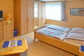 Die Ferienwohnung befindet sich in einem Wohnhaus am Ortseingang von Prerow und verfügt über einen kombinierten Wohn- und Schlafraum, eine separate Küche mit Esstisch sowie ein eigenes Bad mit Dusche und WC. Im Außenbereich stehen Gartenmöbel zur Verfügung. Neben der Ferienwohnung gibt es ein zusätzliches Zimmer, das bei Verfügbarkeit zusammen mit dieser gebucht werden kann, um Platz für bis zu 4 Personen zu bieten.