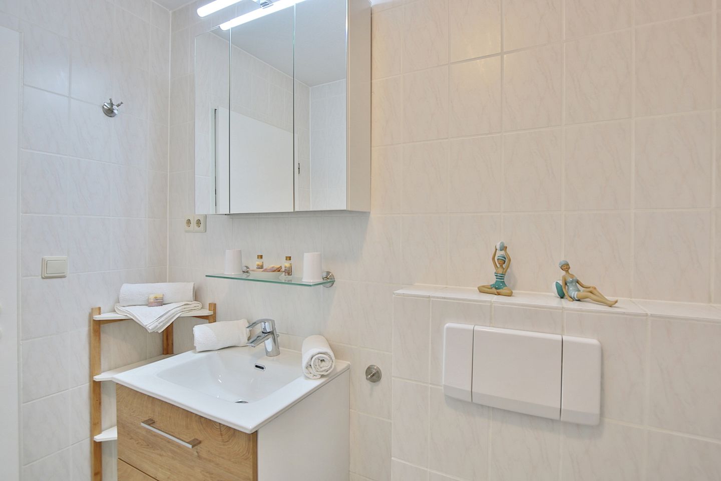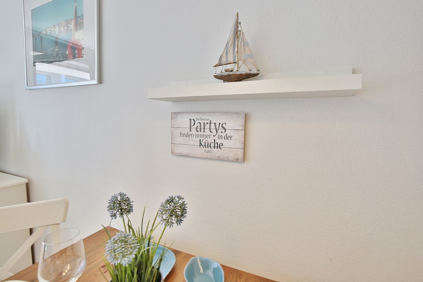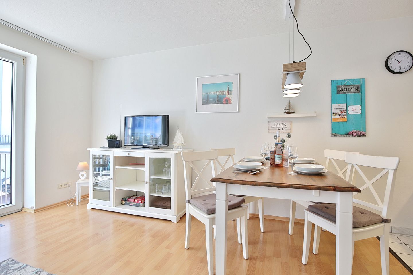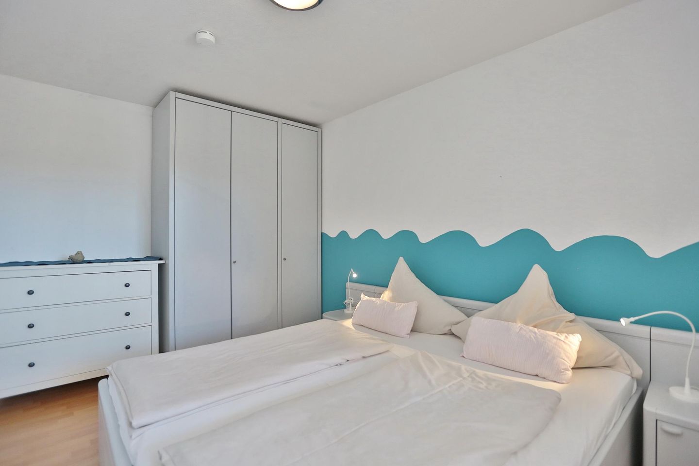 Die 2 Zimmer-Wohnung befindet sich im 1. Obergeschoss und bietet Platz für bis zu 4 Personen. Der lichtdurchflutete und modern eingerichtete Wohn- Schlafraum ist mit einer bequemen Doppelbettcouch (1,40 x 2,00 m) Flachbildfernseher, DVD-Player, Stereoanlage mit CD-Player ausgestattet. Von hier aus gelangen Sie auf den Ostbalkon mit Blick auf die Dünenmeile mit seitlichem Seeblick.
