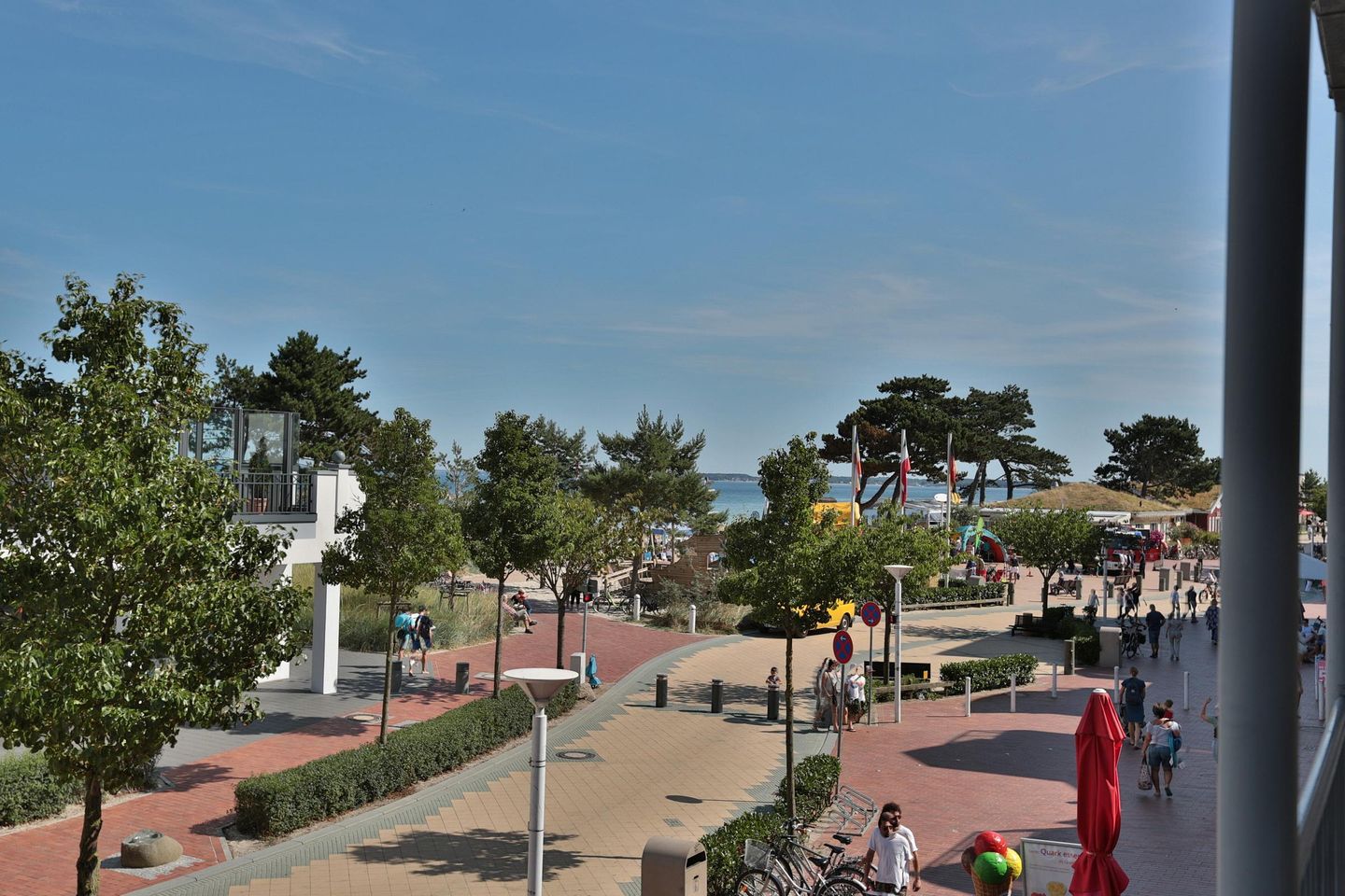 Dieses familienfreundliche Urlaubsdomizil ist nur einen Steinwurf vom Strand und der wunderschönen, neu gestalteten Strandpromenade entfernt. Nur die Fußgängerzone mit ihren gemütlichen Restaurants, Cafes und nicht zu vergessen, die netten Boutiquen, trennen die Anlage vom herrlichen Sandstrand. Alle 2- und 3-Zimmer-Wohnungen verfügen über Balkone mit Teilseeblick und sind individuell eingerichtet. Im Haus befinden sich Waschmaschine und Trockner, ebenso eine Tiefgarage und ein Fahrradraum. Ein Fahrstuhl steht zur Verfügung.