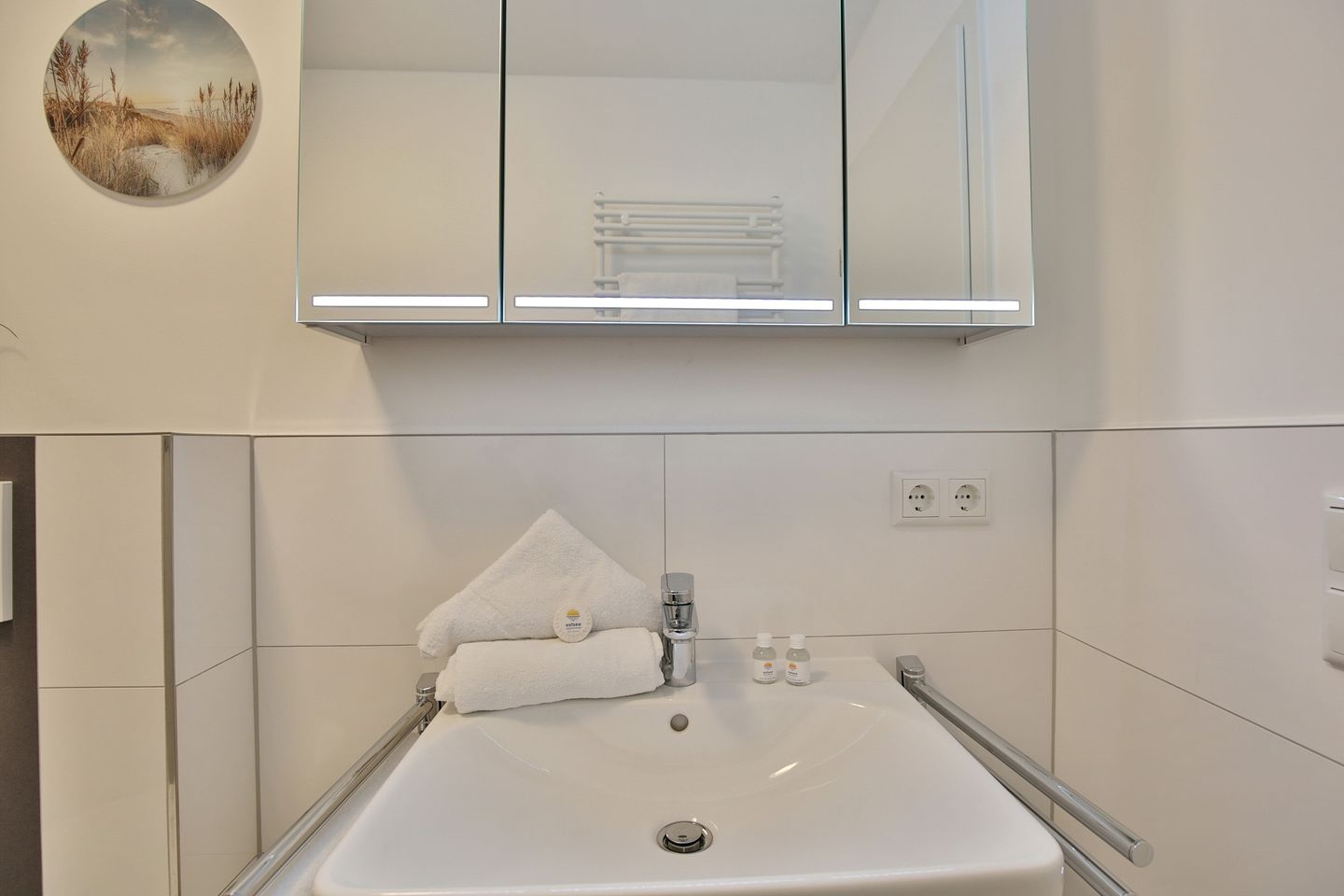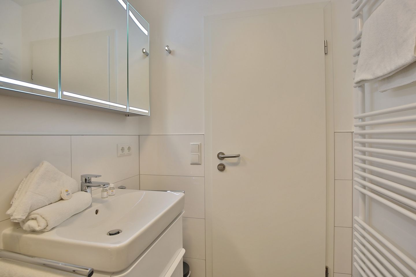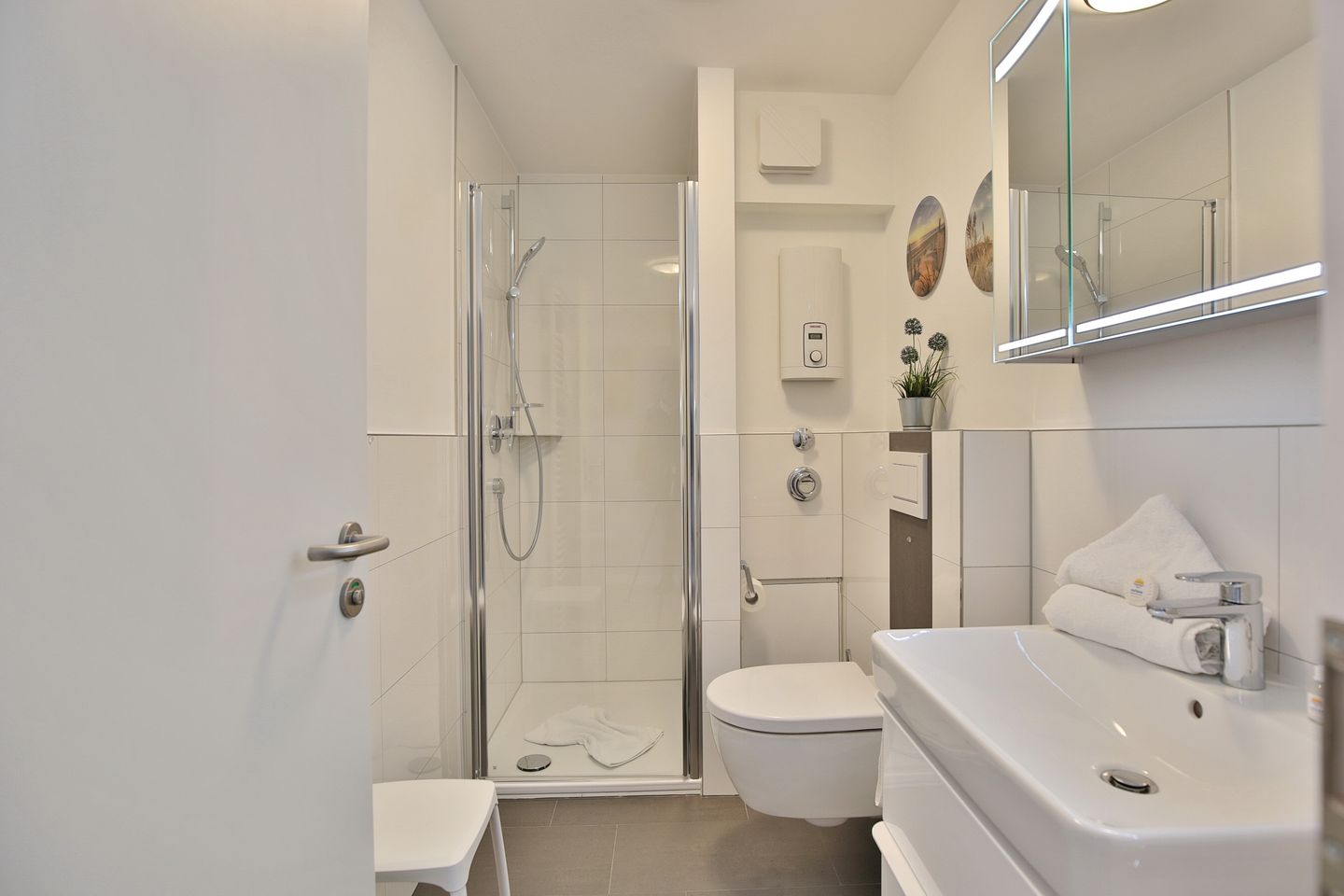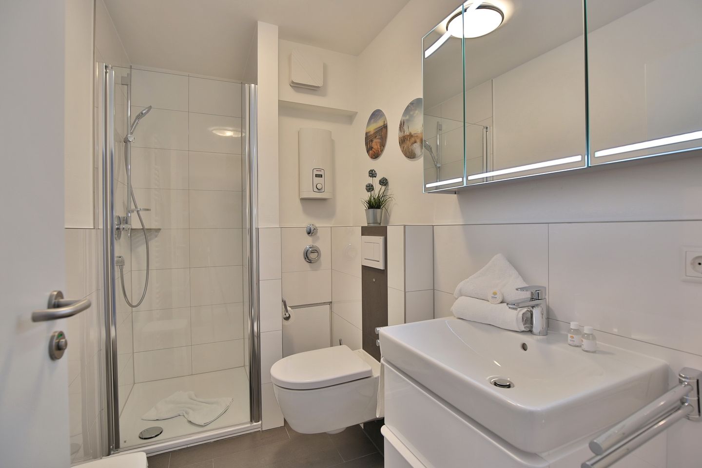 Das Duschbad mit Handtuchheizung und WC komplettieren die Ausstattung.