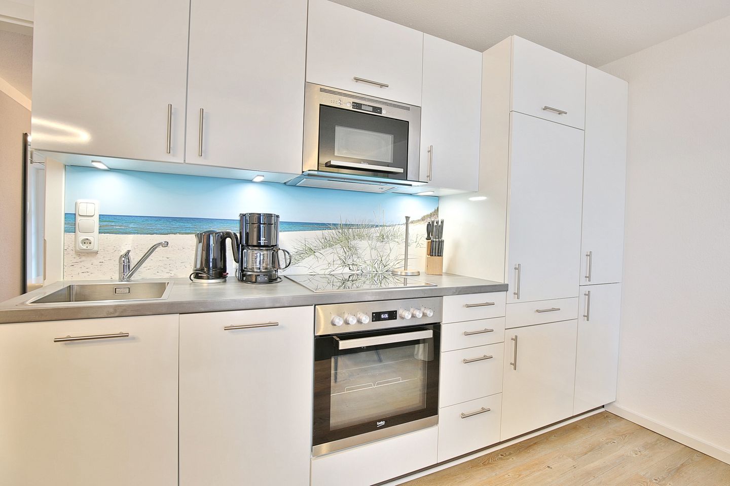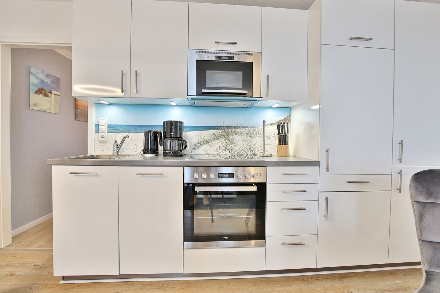 Die gut ausgestattete Küchenzeile mit Ceranfeld, Backofen und Geschirrspülmaschine lädt zum Kochen ein.