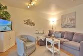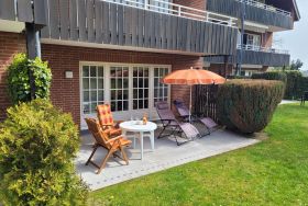 Die schöne Wohnanlage liegt in direkter Strandlage. Nur die Bäderstraße trennt die Anlage vom direkten Strandzugang. Eine Fußgängerbrücke führt sicher dorthin. Wer hier Ferien macht fühlt sich wohl und findet Erholung pur. In nur wenigen Gehminuten erreichen die neu gestaltete Strandpromenade mit Aktivzonen, Relaxmöglichkeiten, Restaurants und den feinsandigen Strand mit Strandkörben. Ein PKW-Stellplatz steht zur Verfügung.