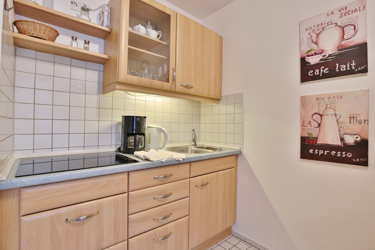 Die Küchenzeile verfügt über eine gute Ausstattung mit 3-Felder-Ceranfeld, Kühlschrank , Kaffeemaschine, Wasserkocher und Toaster. Im separaten neu gestalteten Schlafraum finden Sie ein bequemes Doppelbett (1,80m x 2,00m), einen extra TV sowie einen großen Kleiderschrank. Ein modern gestaltetes Duschbad/WC mit viel Licht und einem großen Handtuchheizkörper runden die Ausstattung ab. Alle Steckdosen sind alle mit Kinderschutz ausgestattet.