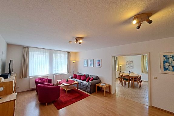 Herzlich willkommen in dieser komfortablen und geschmackvoll eingerichteten 2-Raum-Ferienwohnung, welche sich in der 1. Etage befindet! Mit einer großzügigen Fläche von 67 m² bietet sie Platz für bis zu 4 Erwachsene und ein kleines Kind bis 3 Jahre. Das gemütliche Schlafzimmer ist mit einem Doppelbett ausgestattet, während im Wohnzimmer ein praktisches Doppelschrankbett auf Sie wartet. Die moderne Küche lädt mit einem Essplatz und hochwertigen Geräten wie einem Ceranherd mit Backofen, einer Kühl-/Gefrierkombination und einem Geschirrspüler zum Kochen ein. Selbstverständlich sind auch Geschirr, eine Kaffeemaschine, eine Kaffeepadmaschine, Wasserkocher und eine Mikrowelle vorhanden, damit Sie sich wie zu Hause fühlen können. Für Ihre Unterhaltung sorgen zwei Kabel-TV-Geräte (einmal im Wohnzimmer und einmal im Schlafzimmer) sowie eine kleine HiFi-Anlage. Das Tageslicht-Bad mit Dusche und WC rundet das Angebot ab. Genießen Sie zudem die frische Luft auf dem Balkon zur Ostseite, der vom Schlafzimmer aus zugänglich ist. Die Erstausstattung an Bettwäsche und Handtüchern wird Ihnen zur Verfügung gestellt. Bitte denken Sie daran, Badetücher für den Strand und Geschirrtücher selbst mitzubringen. Ein abschließbarer Kellerraum, WLAN sowie ein Pkw-Stellplatz stehen Ihnen ebenfalls zur Verfügung.