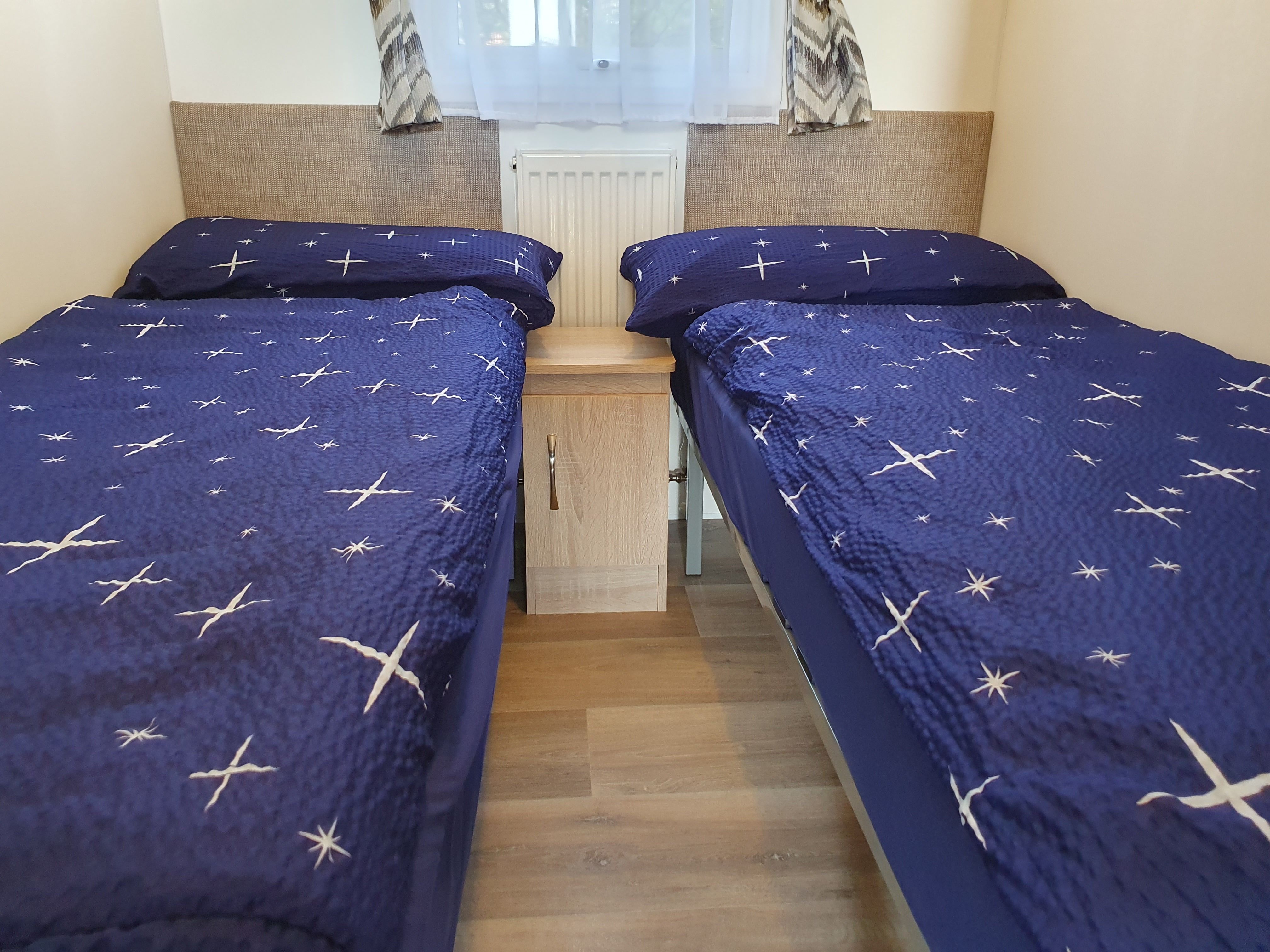 Wir bieten unser gemütliches Tiny House mit ca. 30m² Größe im schönen Uplengen/Ostfriesland an. Das Tiny House ist voll ausgestattet mit Küche, Bad, Wohnraum sowie einem Schlafzimmer mit Doppelbett (1,40x2,00m) und einem zweiten Schlafzimmer mit zwei Einzelbetten (0,60x1,75m). Bettwäsche und Handtücher sind vorhanden, genauso wie alles was man zum Kochen braucht. Außerdem finden Sie auf der Terrasse Gartenmöbel mit einem einzigartigen Blick in die Weite. Das Tiny House verfügt über eine Heizung, so dass es auch im Winter bewohnbar ist. Ihr Auto können Sie direkt am Haus parken. Für Ihre Fahrräder gibt es eine abschließbare Hütte, in der auch ein Grill zur Nutzung bereitsteht. Haustiere sind NICHT gestattet. Das Haus ist nicht barrierefrei. WLAN ist zurzeit noch NICHT vorhanden. Die Saunalandschaft ist auf Anfrage und Aufpreis sowie vorheriger Absprache zu buchbar.